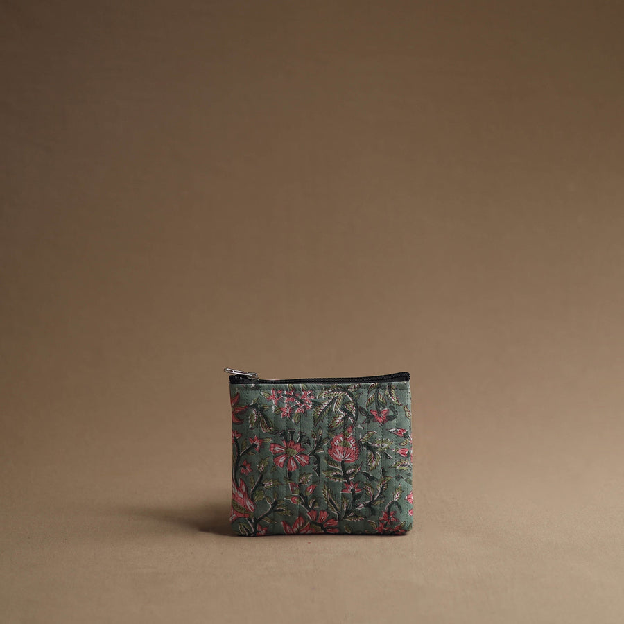 Keep your essentials organized with our green handmade cotton multipurpose utility pouches (set of 3). The handcrafted bag set serves as a multipurpose solution for storing makeup, jewelry, medicines, stationery, and more. The foam layer lining ensures durability and protection. These pouches are having a smooth zipper closure.