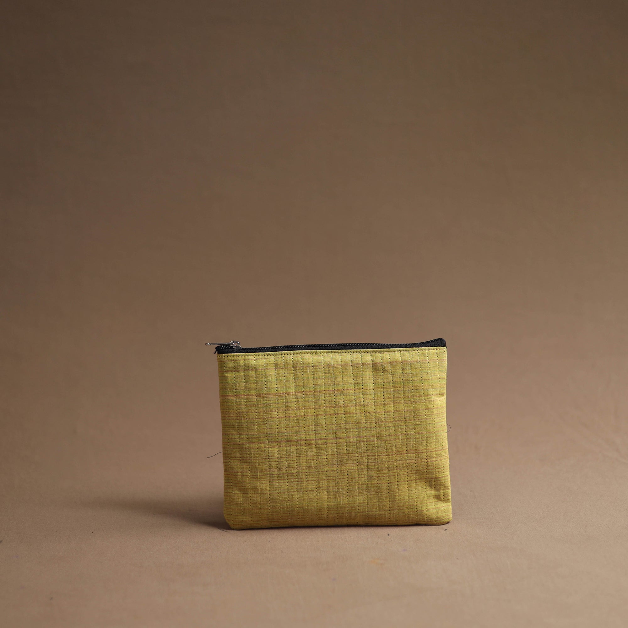 Keep your essentials organized with our yellow handmade cotton multipurpose utility pouches (set of 3). The handcrafted bag set serves as a multipurpose solution for storing makeup, jewelry, medicines, stationery, and more. The foam layer lining ensures durability and protection. These pouches are having a smooth zipper closure.
