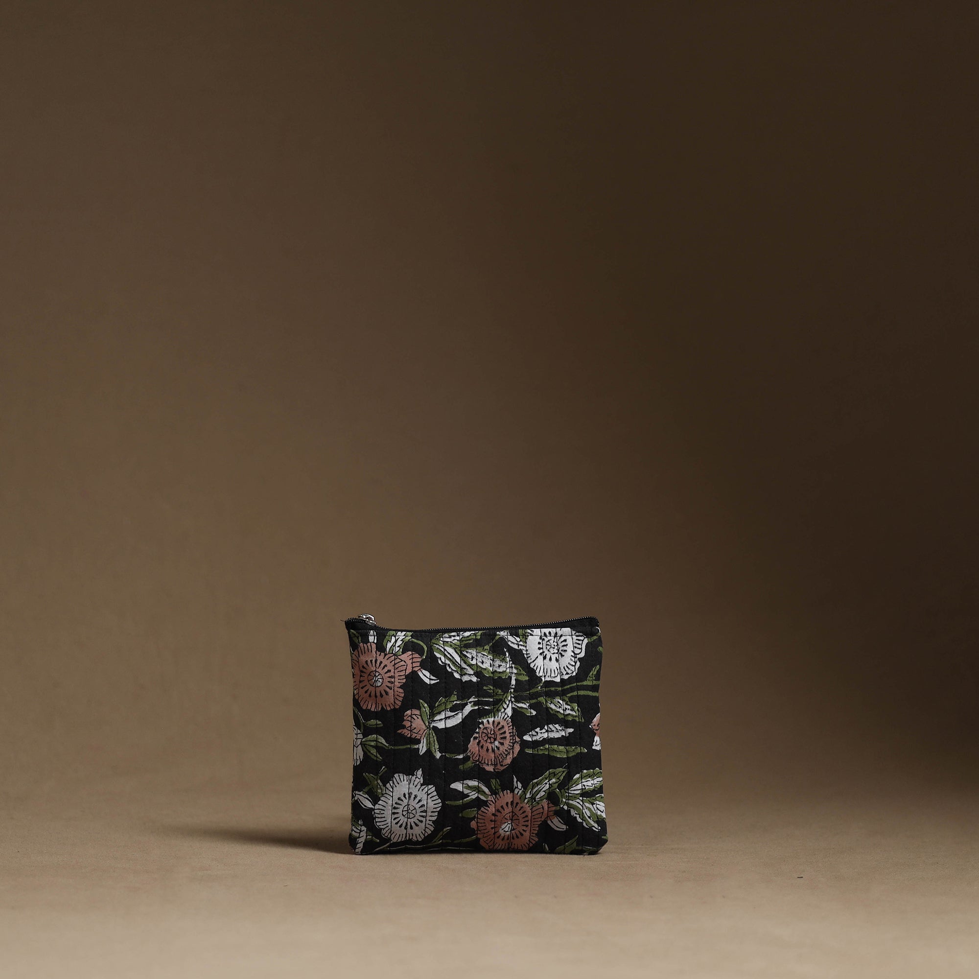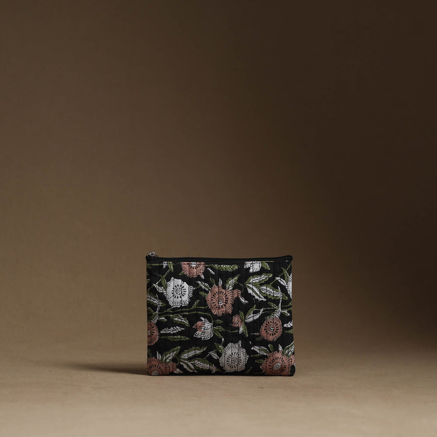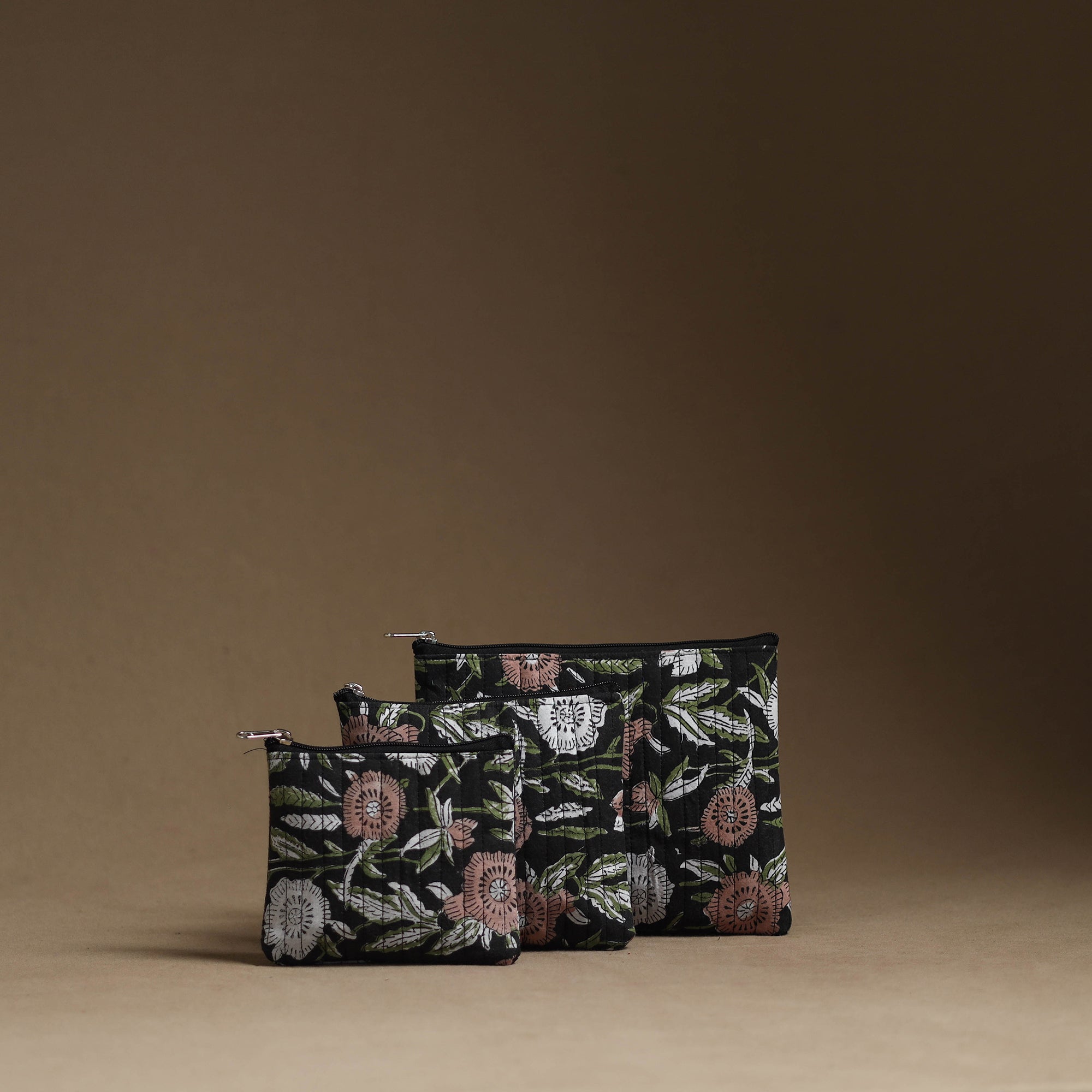 Keep your essentials organized with our black handmade cotton utility pouch set. The handcrafted bag set serves as a multipurpose solution for storing makeup, jewelry, medicines, stationery, and more. The foam layer lining ensures durability and protection. These eco-friendly pouches are both stylish and functional. These pouches are having a smooth zipper closure.