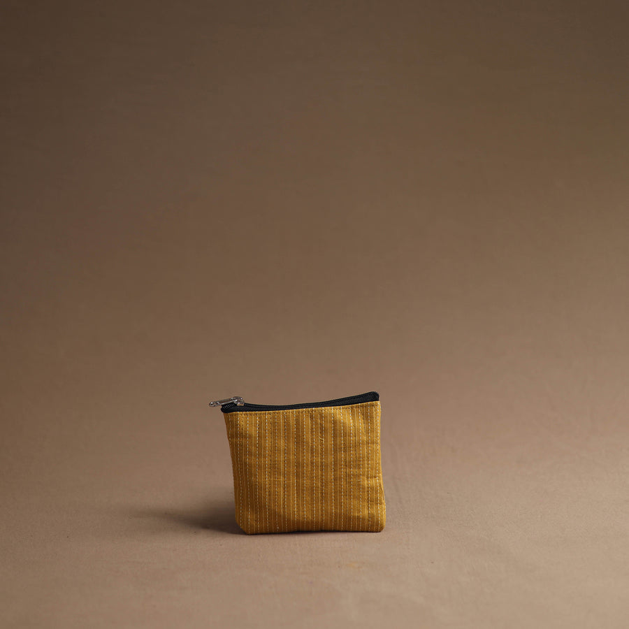 Keep your essentials organized with our yellow handmade cotton multipurpose utility pouches (set of 3). The handcrafted bag set serves as a multipurpose solution for storing makeup, jewelry, medicines, stationery, and more. The foam layer lining ensures durability and protection. These pouches are having a smooth zipper closure.