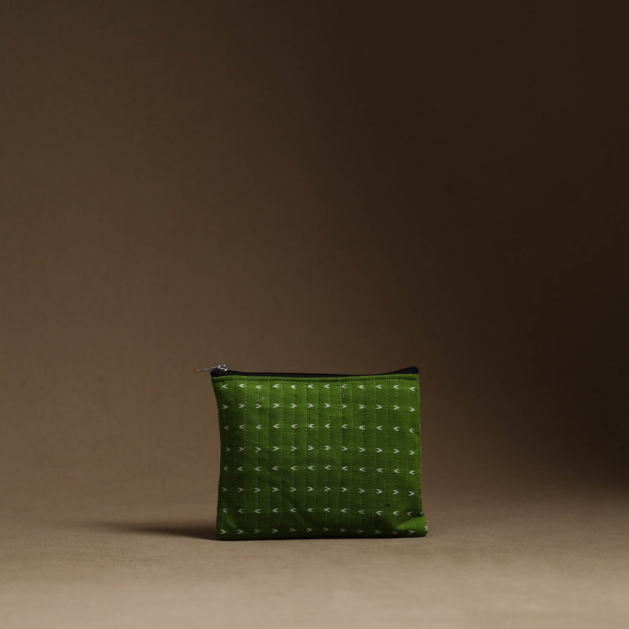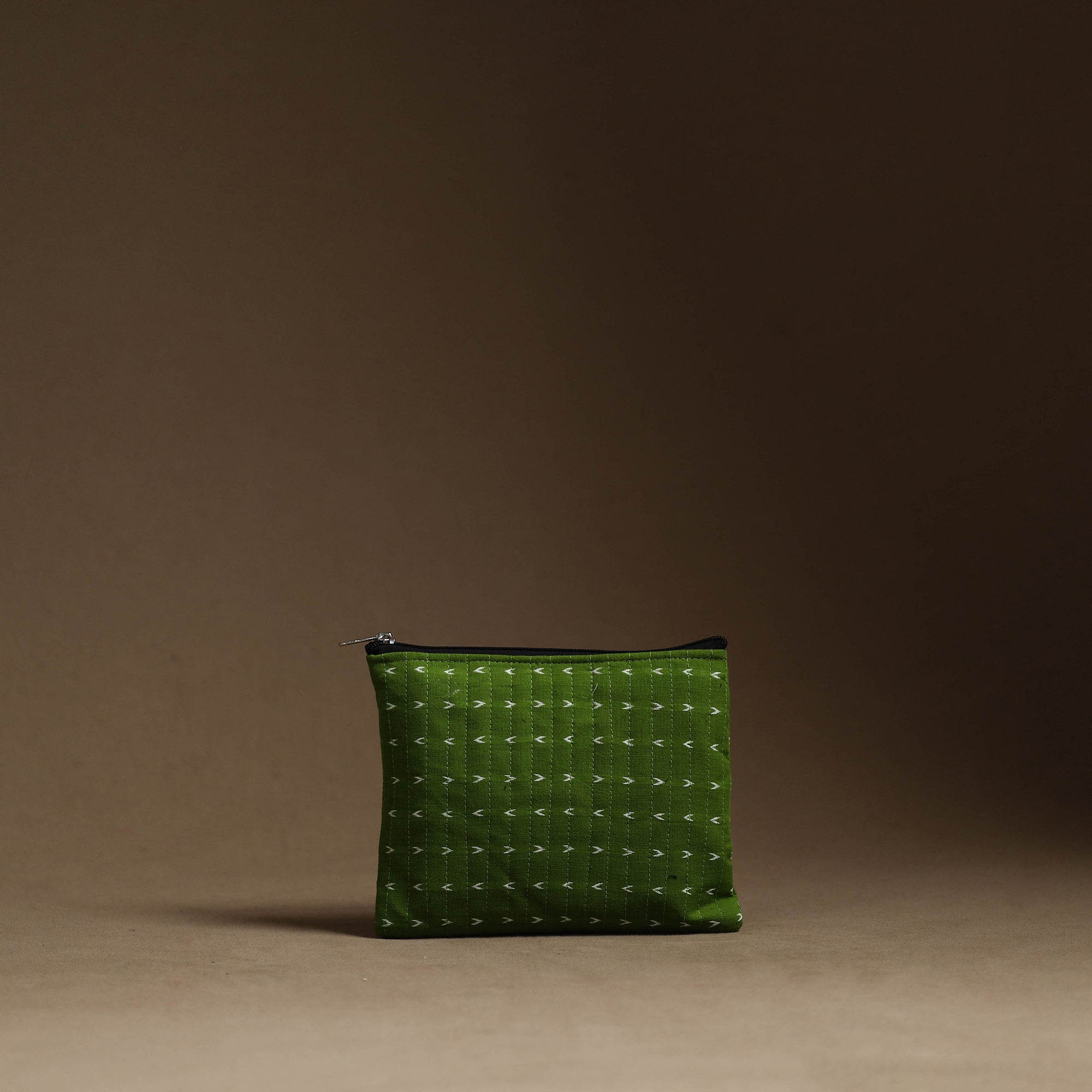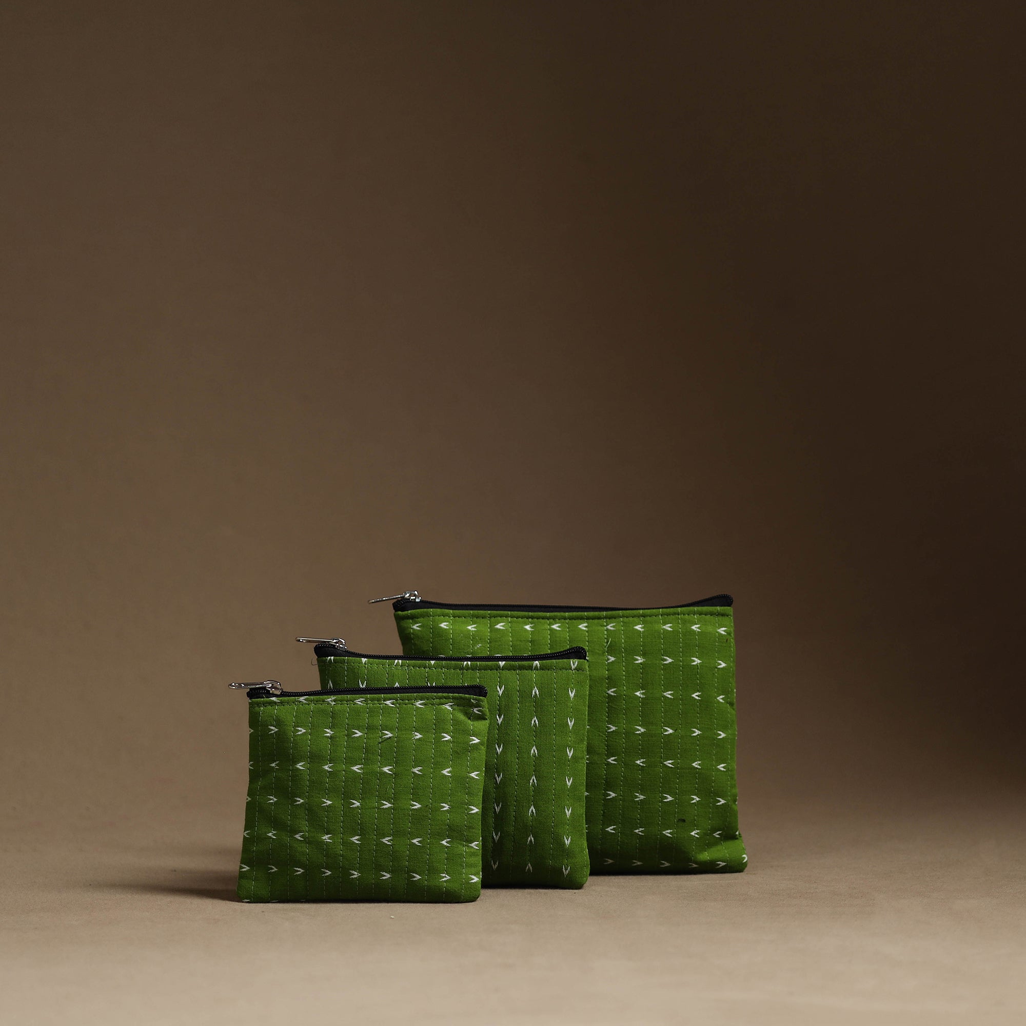 Keep your essentials organized with our green handmade cotton utility pouch set. The handcrafted bag set serves as a multipurpose solution for storing makeup, jewelry, medicines, stationery, and more. The foam layer lining ensures durability and protection. These eco-friendly pouches are both stylish and functional. These pouches are having a smooth zipper closure.