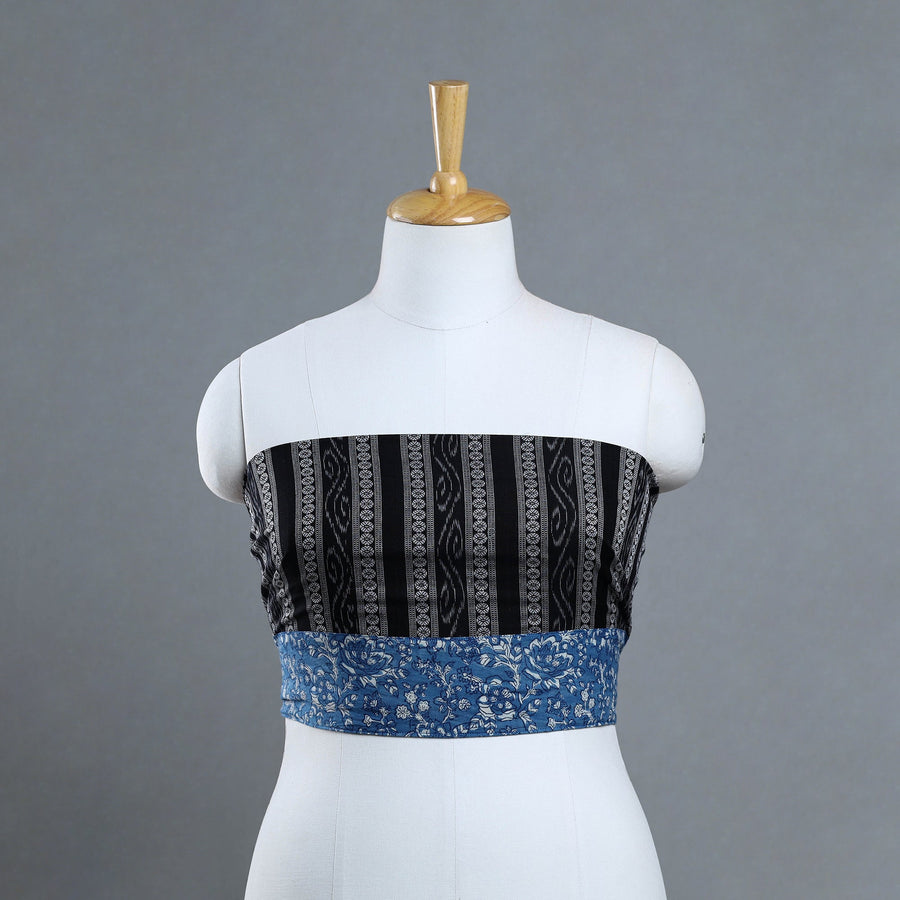 Celebrate the artistry of Odisha with this black handmade cotton sambalpuri ikat blouse piece. Known for its intricate dyeing technique & vibrant patterns this blouse piece brings the timeless elegance of ikat to your saree ensemble. Crafted from high-quality cotton it offers unmatched comfort breathability & durability making it a sustainable choice for your wardrobe. Embrace Indian heritage with this eco-friendly and ethically sourced fabric.