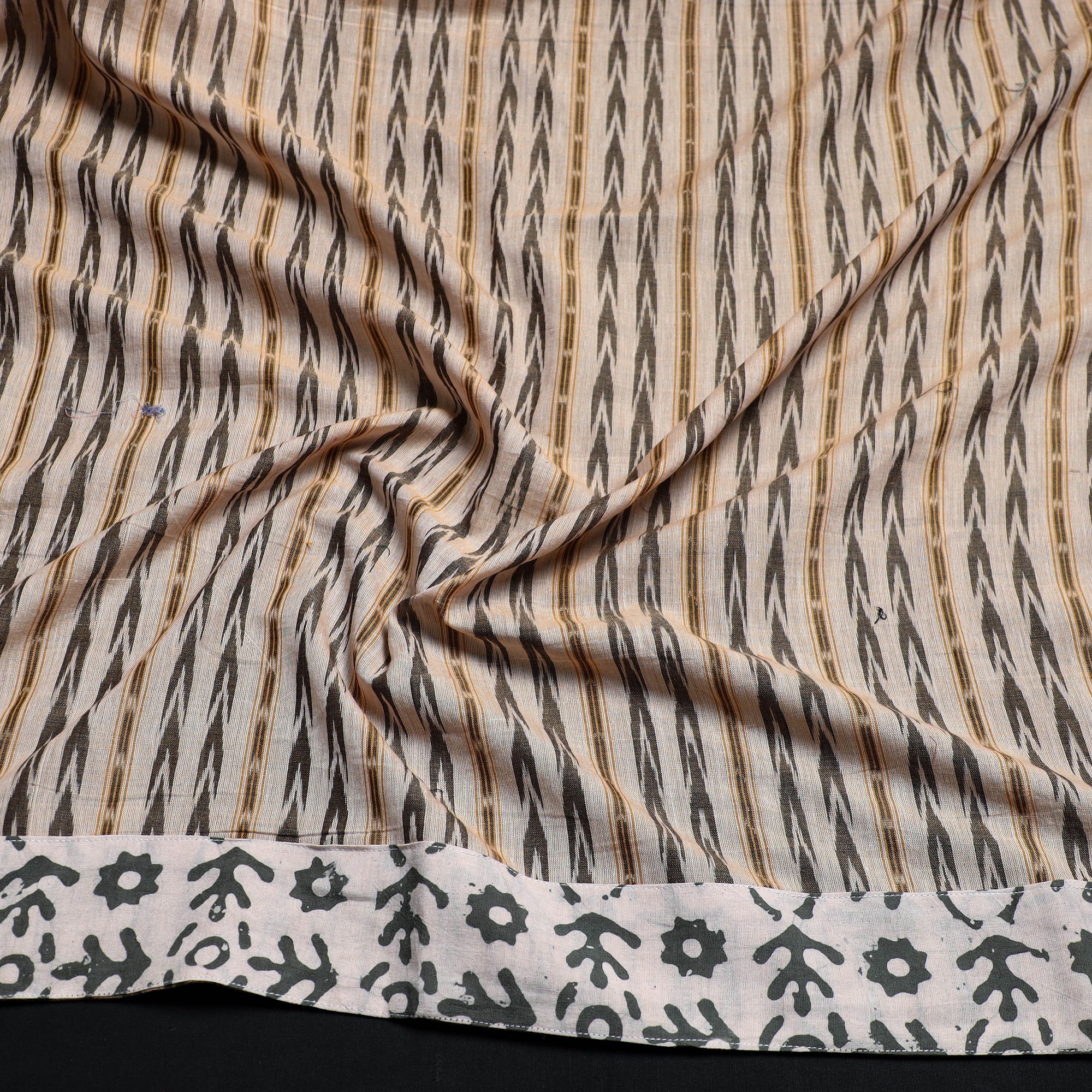 Black - Sambalpuri Ikat Handloom Cotton 3pc Unstitched Dress Material 16