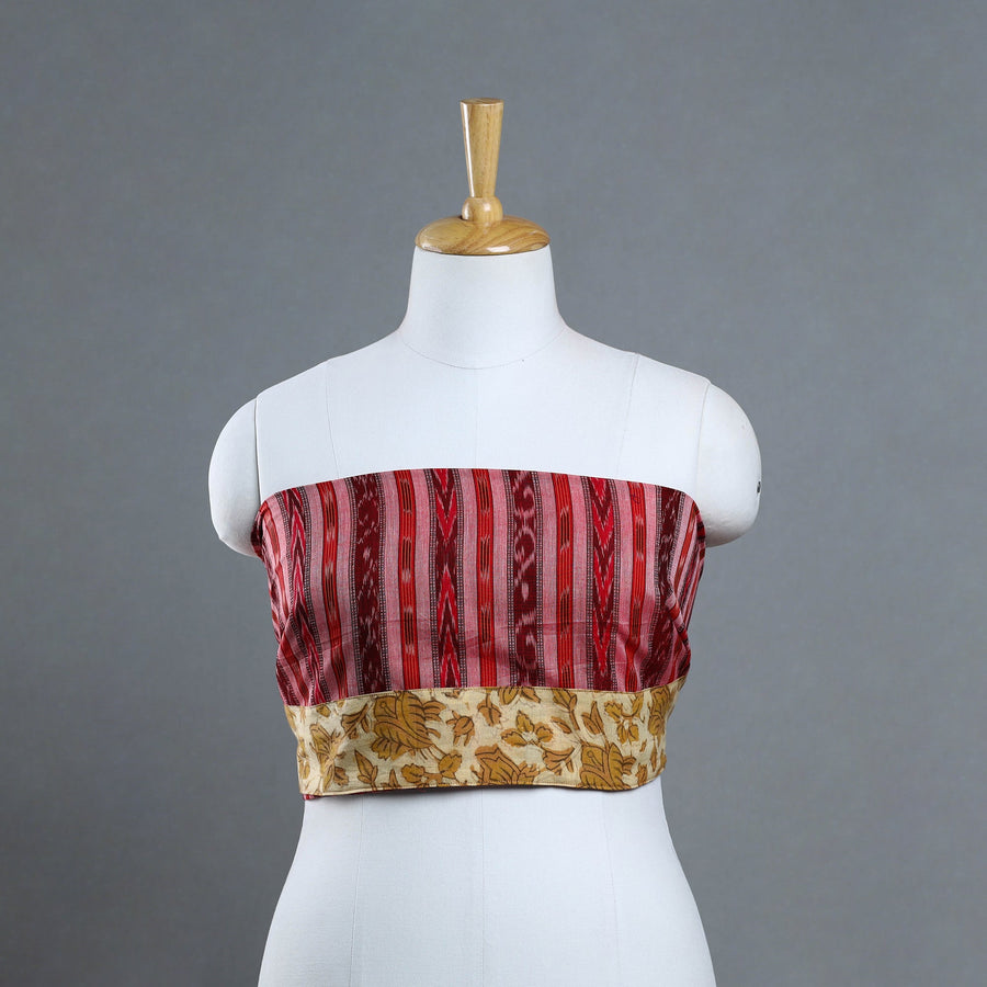 Celebrate the artistry of Odisha with this red handmade cotton sambalpuri ikat blouse piece. Known for its intricate dyeing technique & vibrant patterns this blouse piece brings the timeless elegance of ikat to your saree ensemble. Crafted from high-quality cotton it offers unmatched comfort breathability & durability making it a sustainable choice for your wardrobe. Embrace Indian heritage with this eco-friendly and ethically sourced fabric.