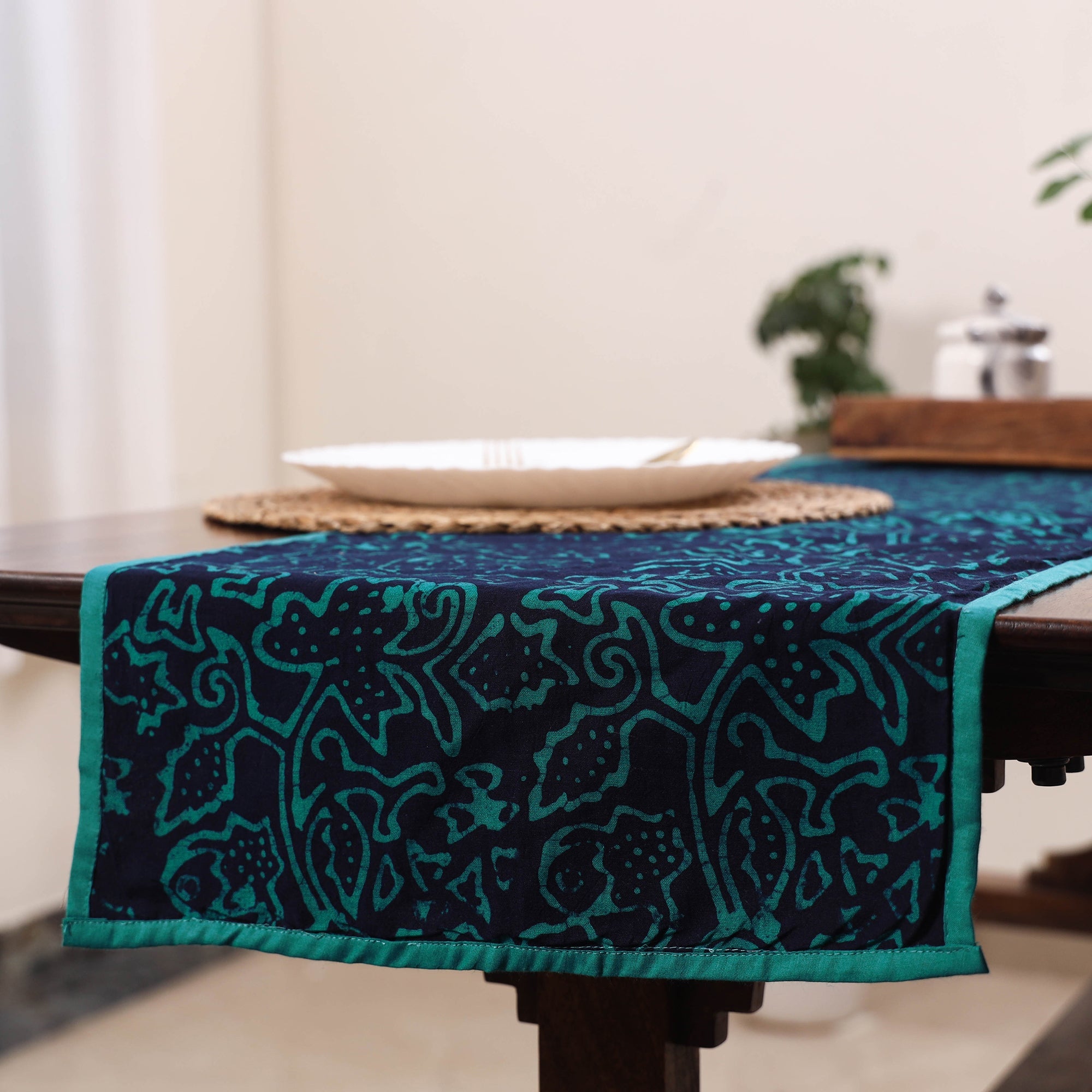 Enhance your space with this blue artisan-made cotton table runner. Created using traditional techniques and Indian textiles, it adds an elegant touch to your dining table. Whether for daily use or special occasions, it brings charm and a thoughtful, handmade touch to your home décor.