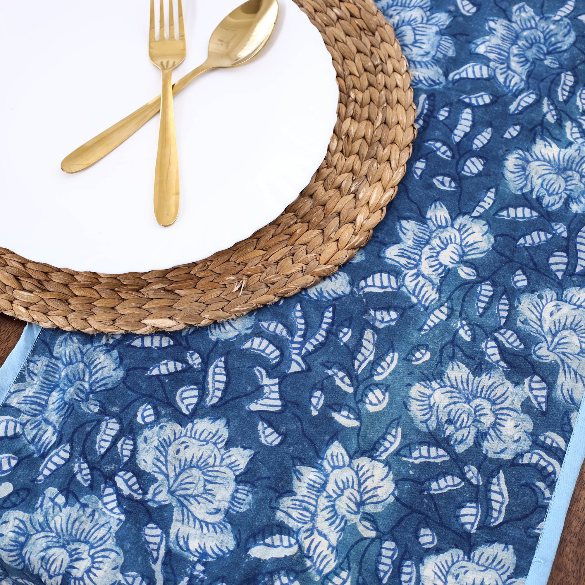 Add a touch of charm to your table with this blue handcrafted blue cotton table runner, created by skilled artisans using traditional techniques and heritage textile work. Whether laid on a dining table or styled over a centre table, it adds a simple yet graceful aesthetic to your space.