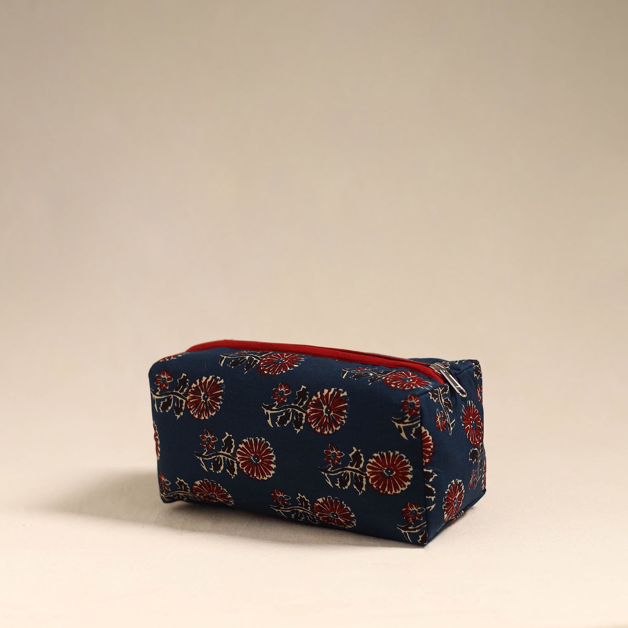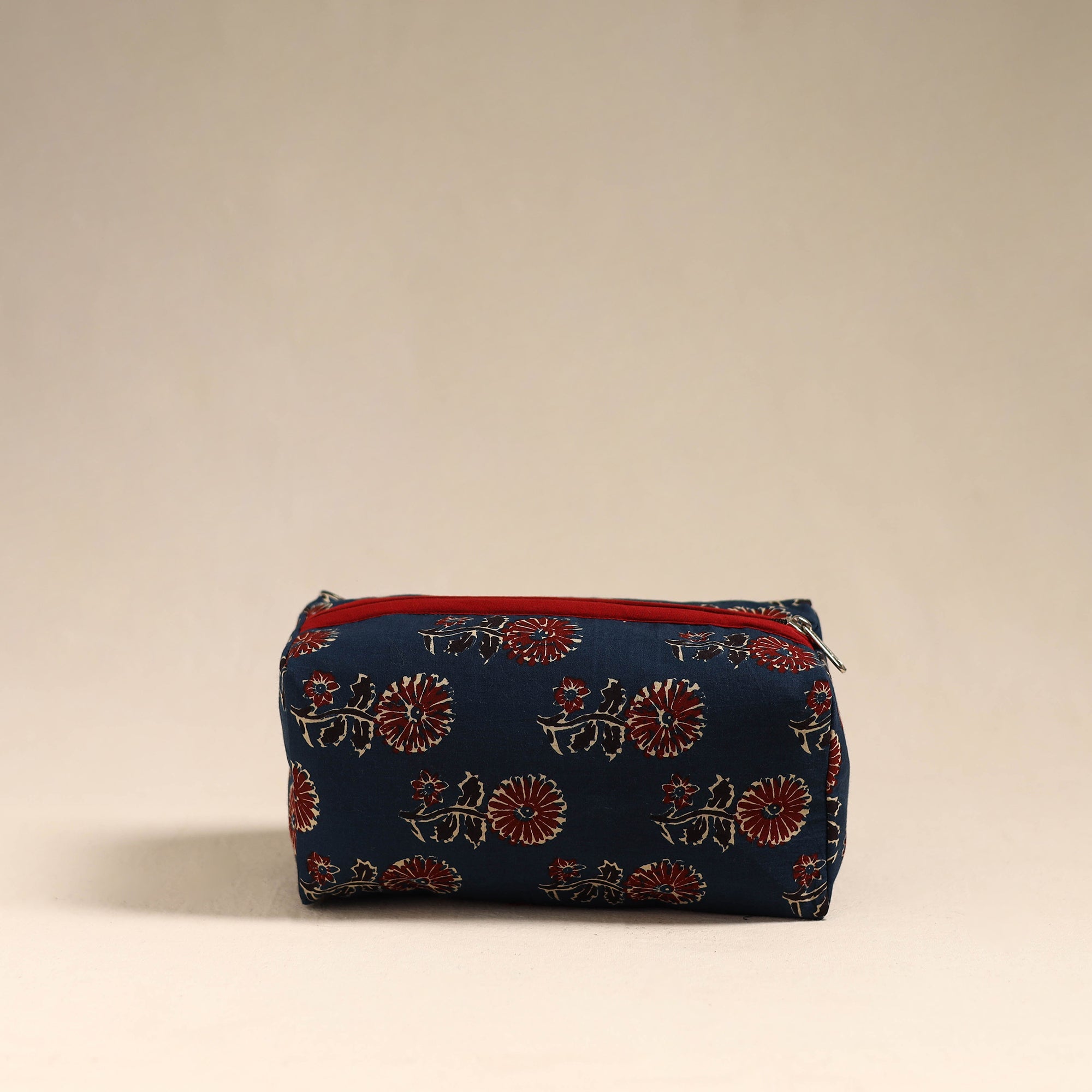 This blue handcrafted cotton toiletry bag blends traditional artistry with everyday functionality, made carefully by skilled hands. Featuring a waterproof lining and a strong zip closure, it keeps your daily essentials well organized and protected, making it an ideal pick for both daily use and travel.