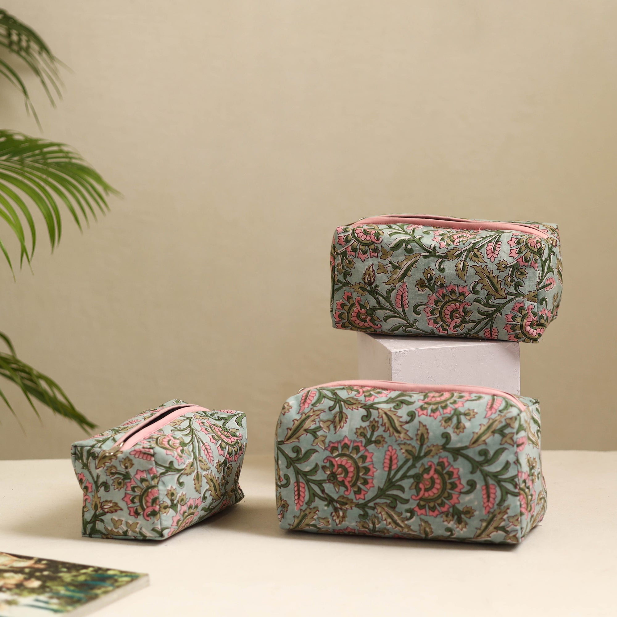 This grey handmade cotton toiletry bags (set of 3) is the perfect companion for your travels. Crafted by artisans, each bag features a waterproof lining to securely store your toiletries, cosmetics, and essentials. Lightweight and durable, this versatile set ensures your items are kept safe and easily accessible.