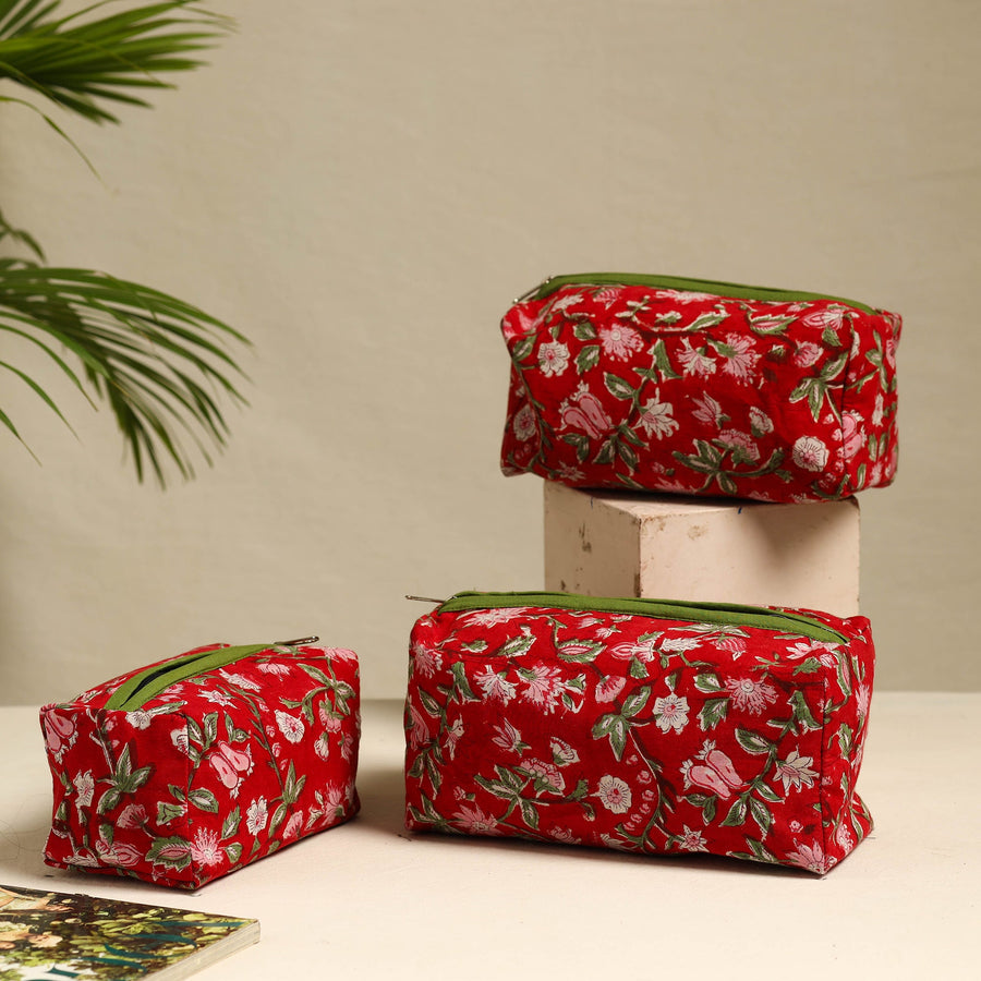Stay organized with this red handmade cotton toiletry bags (set of 3), thoughtfully designed for style and functionality. This set of three bags includes a waterproof PVC lining, making it ideal for storing toiletries, cosmetics, and travel essentials securely.