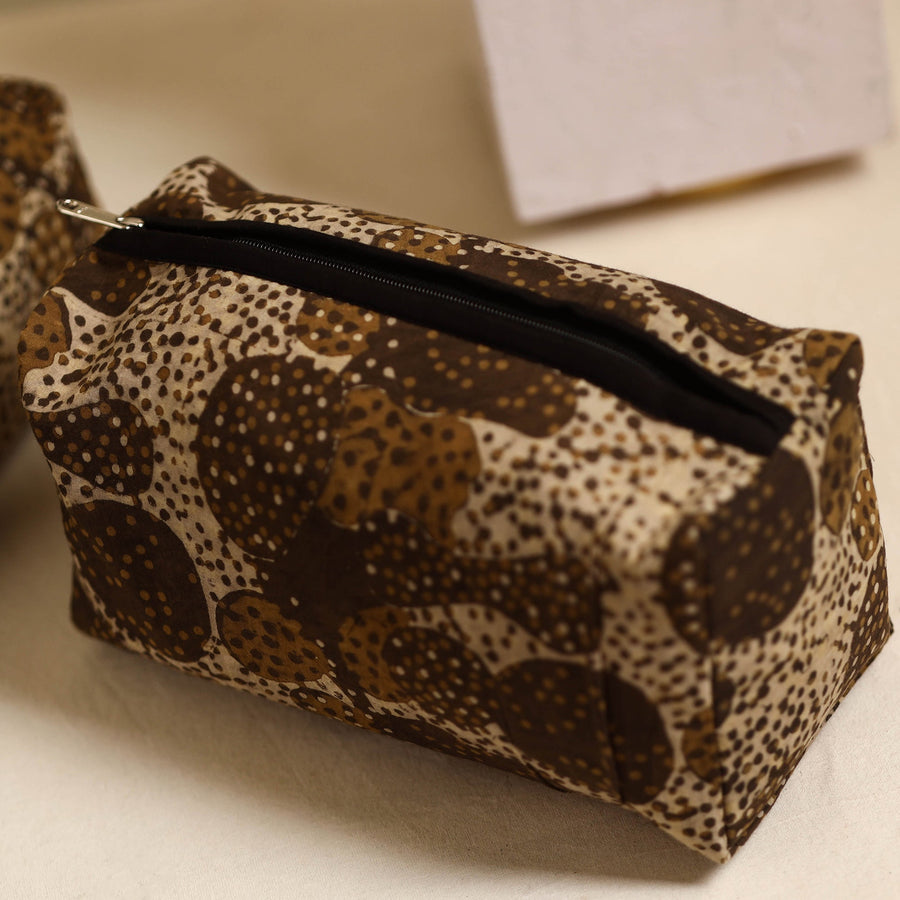 This brown handmade cotton toiletry bags (set of 3) is the perfect companion for your travels. Crafted by artisans, each bag features a waterproof lining to securely store your toiletries, cosmetics, and essentials. Lightweight and durable, this versatile set ensures your items are kept safe and easily accessible.