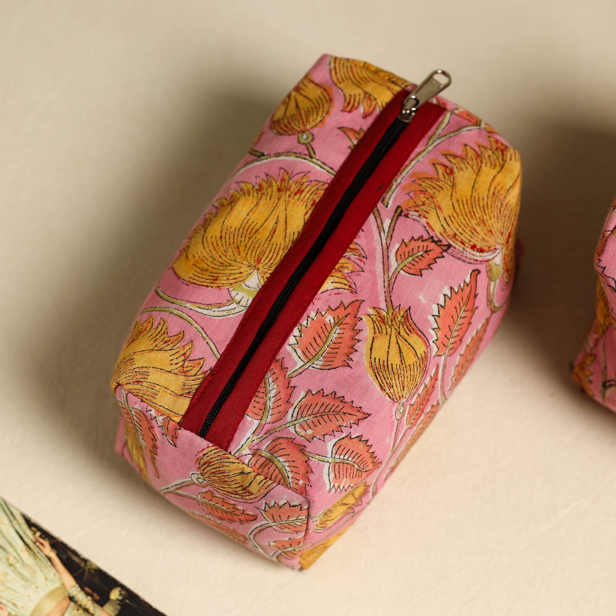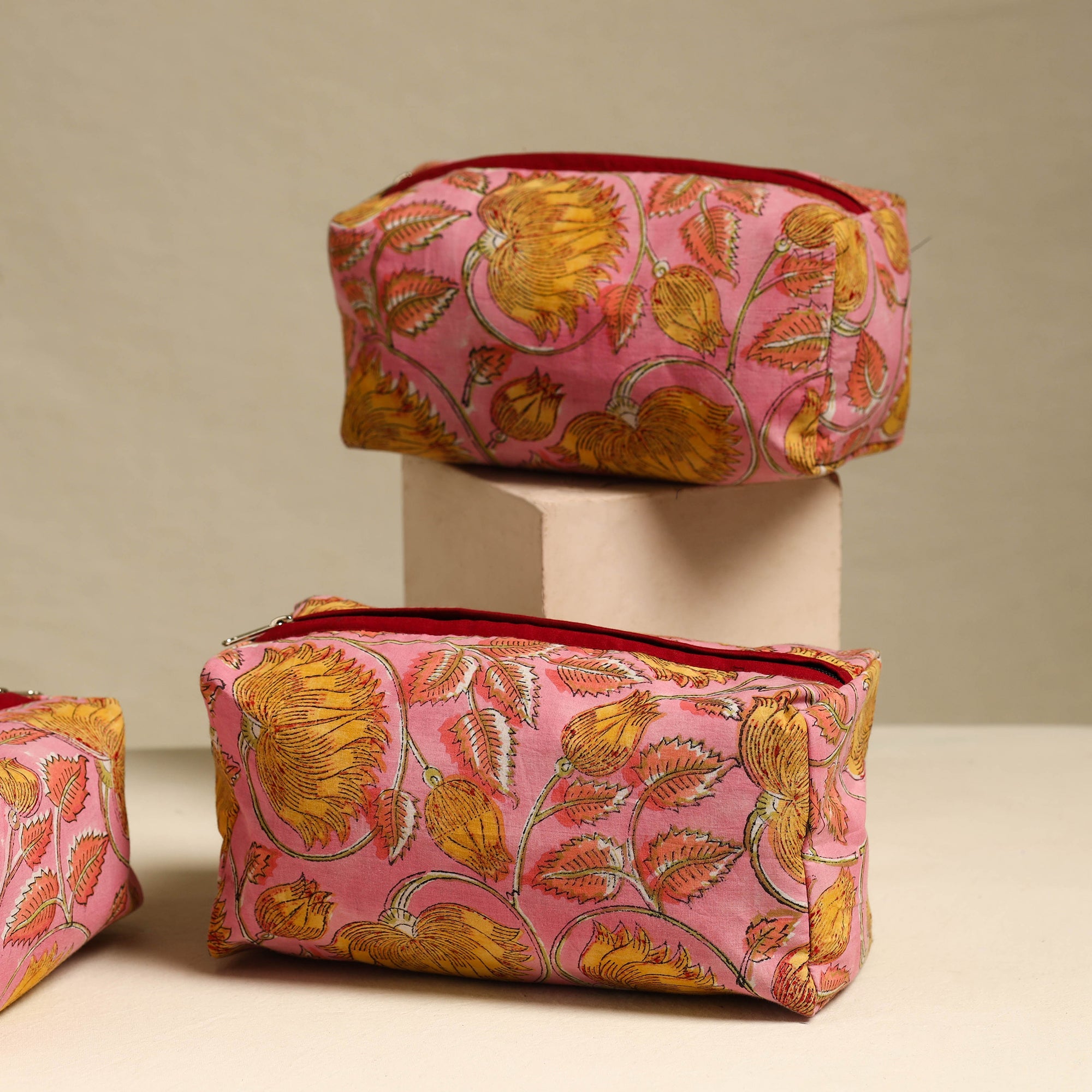 Stay organized with this pink handmade cotton toiletry bags (set of 3), thoughtfully designed for style and functionality. This set of three bags includes a waterproof PVC lining, making it ideal for storing toiletries, cosmetics, and travel essentials securely.