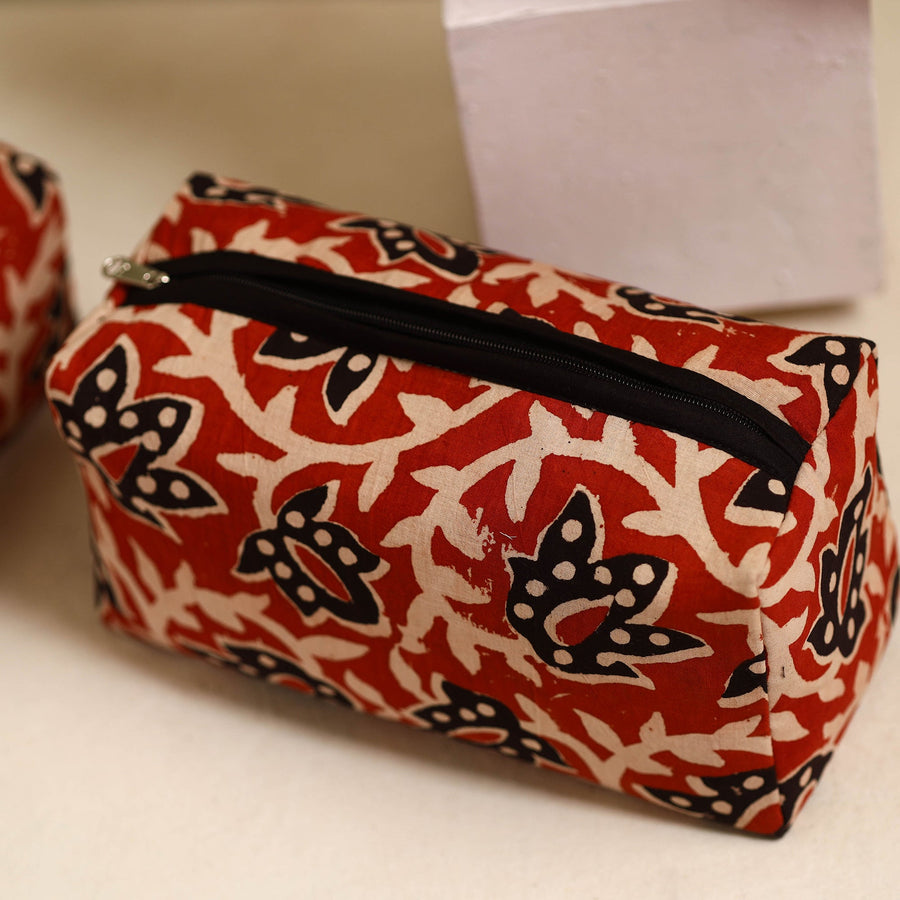 This red handmade cotton toiletry bags (set of 3) is the perfect companion for your travels. Crafted by artisans, each bag features a waterproof lining to securely store your toiletries, cosmetics, and essentials. Lightweight and durable, this versatile set ensures your items are kept safe and easily accessible.