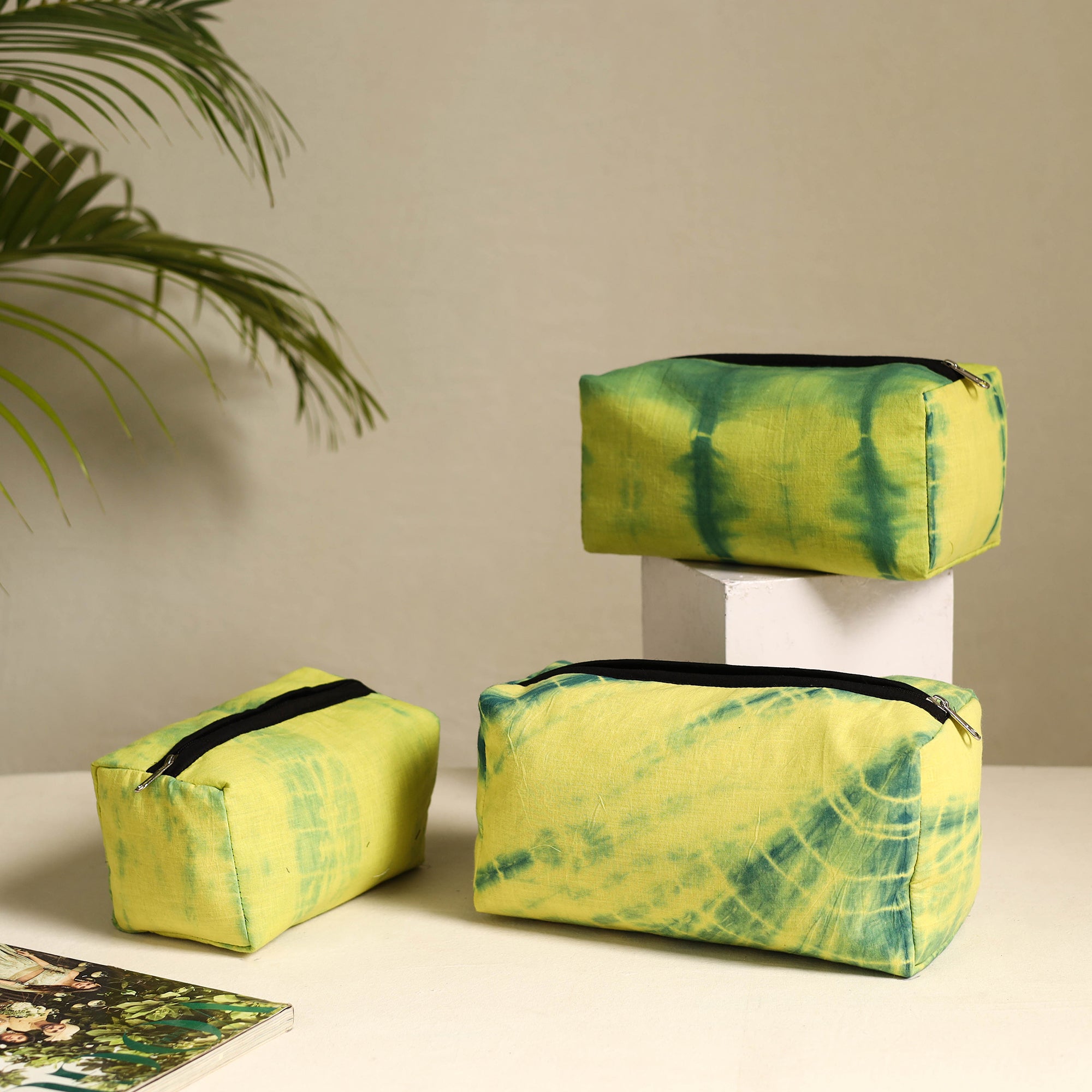 Stay organized with this green handmade cotton toiletry bags set of 3, designed for both style and practicality. Each bag features a waterproof PVC lining, perfect for securely storing toiletries, cosmetics, or travel essentials. Lightweight and durable, this versatile set ensures your items are kept safe and easily accessible.