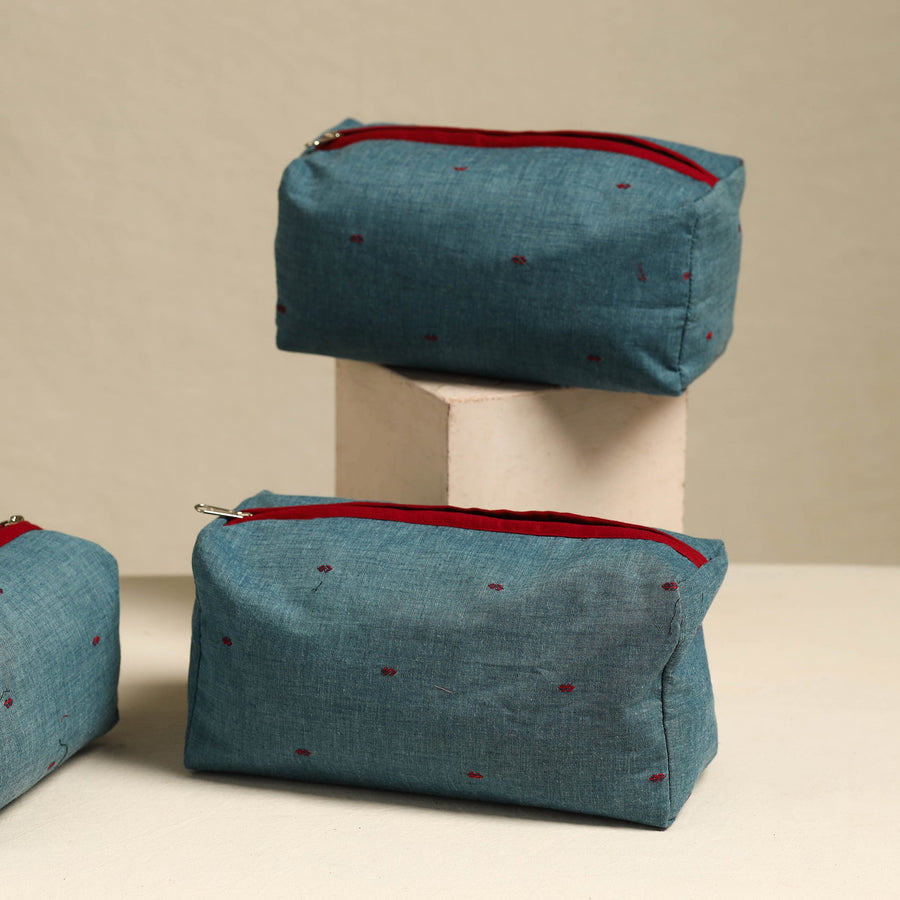 Stay organized with this blue handmade cotton toiletry bags (set of 3), thoughtfully designed for style and functionality. This set of three bags includes a waterproof PVC lining, making it ideal for storing toiletries, cosmetics, and travel essentials securely.