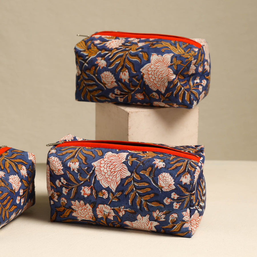 Stay organized with this blue handmade cotton toiletry bags (set of 3), thoughtfully designed for style and functionality. This set of three bags includes a waterproof PVC lining, making it ideal for storing toiletries, cosmetics, and travel essentials securely.