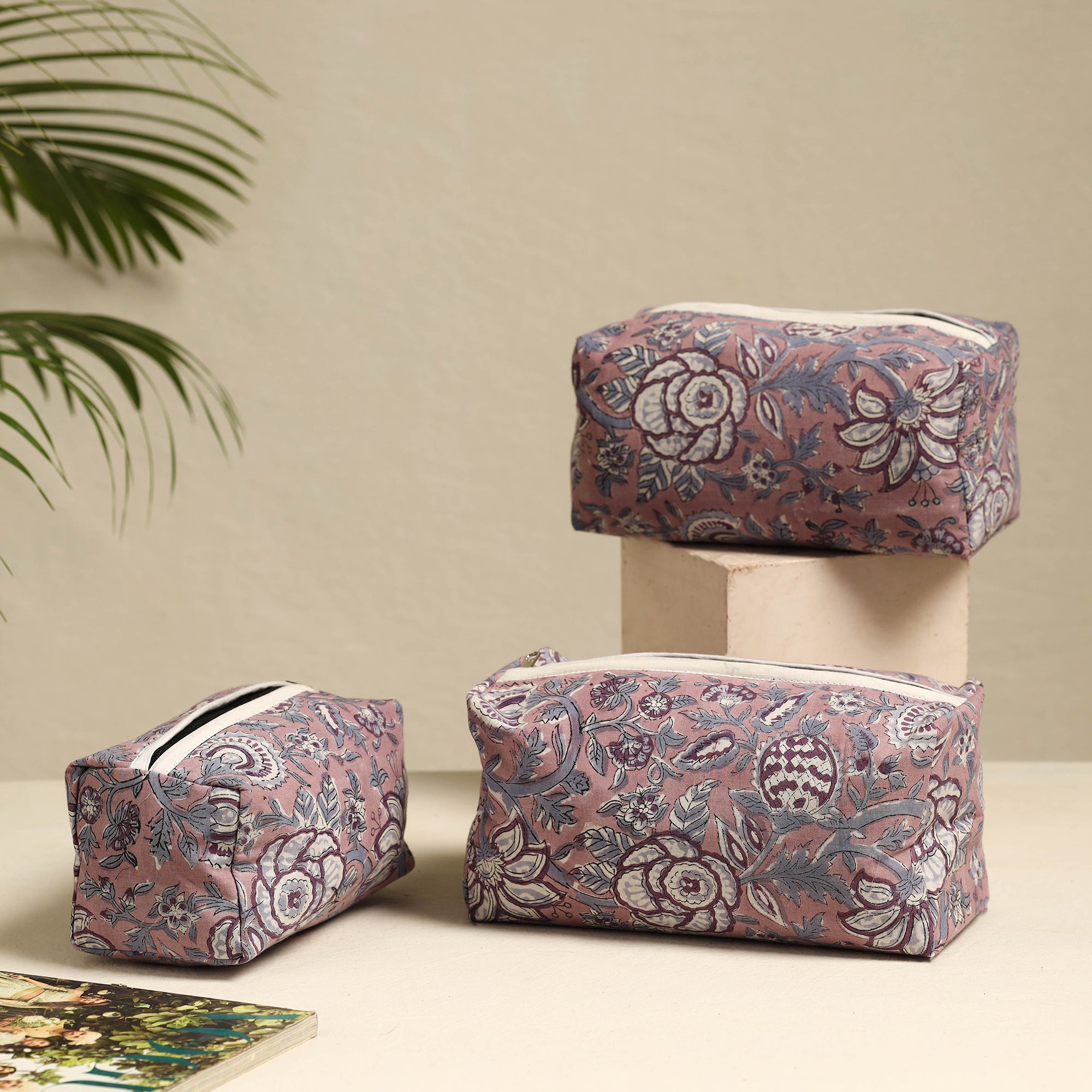 Stay organized with this pink handmade cotton toiletry bags (set of 3), thoughtfully designed for style and functionality. This set of three bags includes a waterproof PVC lining, making it ideal for storing toiletries, cosmetics, and travel essentials securely.