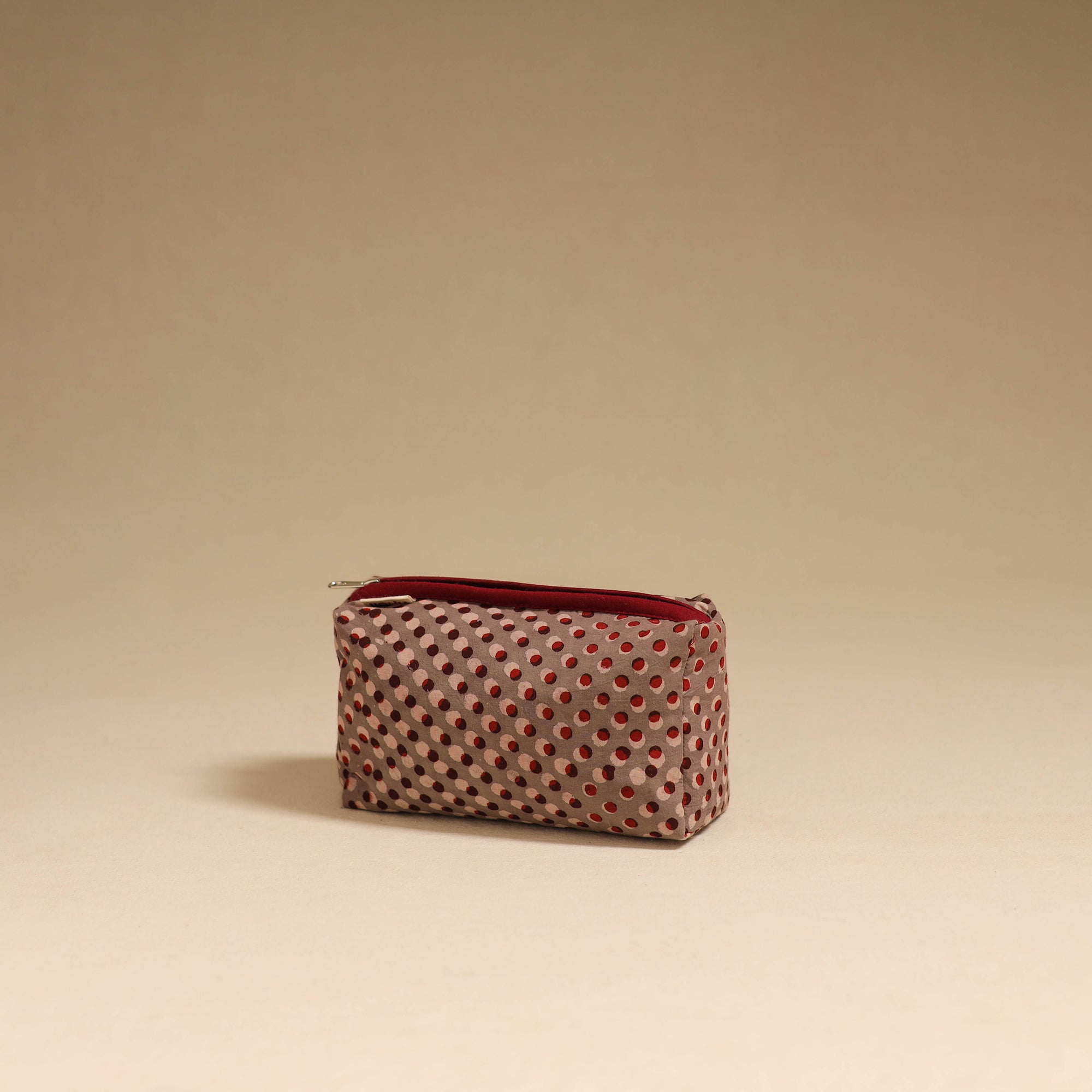 This brown handmade cotton toiletry pouch blends traditional artistry with everyday functionality, carefully made by skilled artisans. Featuring a waterproof lining and a sturdy zip closure, it keeps your daily essentials well-organized and protected, making it a perfect choice for both daily use and travel.