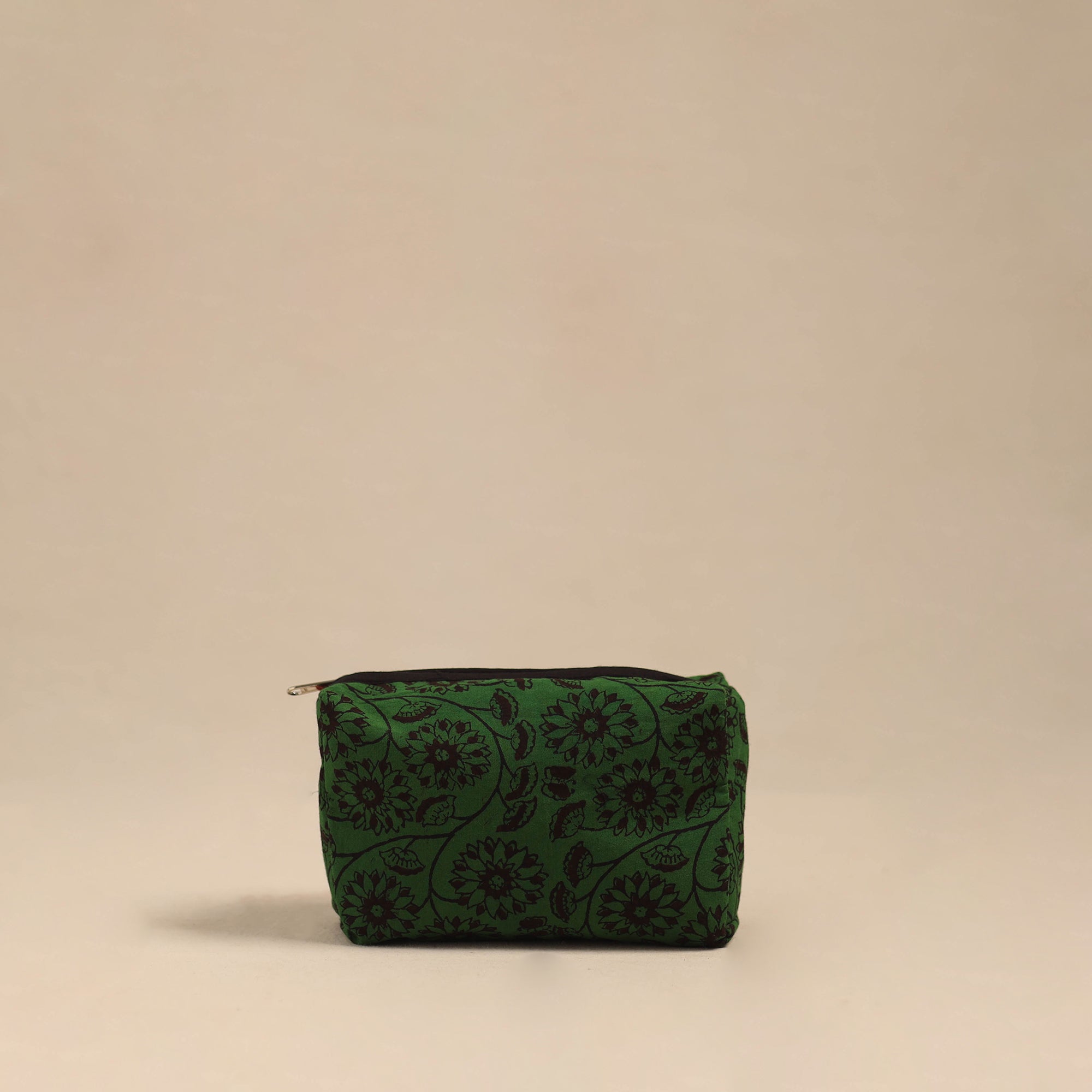 Keep your essentials organized with our green handmade cotton toiletry pouch. Featuring a durable waterproof lining, this travel pouch blends traditional craftsmanship with modern functionality. Crafted from handmade cotton by skilled artisans. This pouch is offering practical storage for cosmetics, toiletries, & more. Make a sustainable, stylish choice for your journeys.