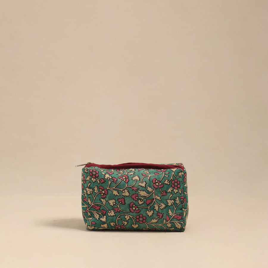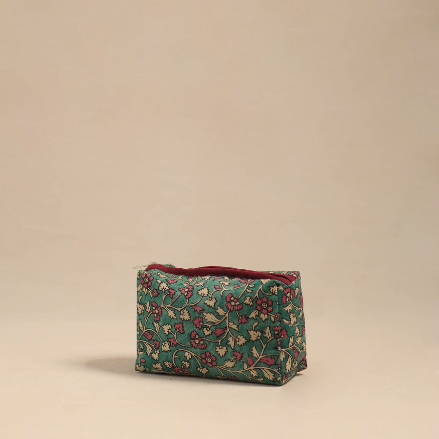 Keep your essentials organized with our green handmade cotton toiletry pouch. Featuring a durable waterproof lining, this travel pouch blends traditional craftsmanship with modern functionality. Crafted from handmade cotton by skilled artisans. This pouch is offering practical storage for cosmetics, toiletries, & more. Make a sustainable, stylish choice for your journeys.