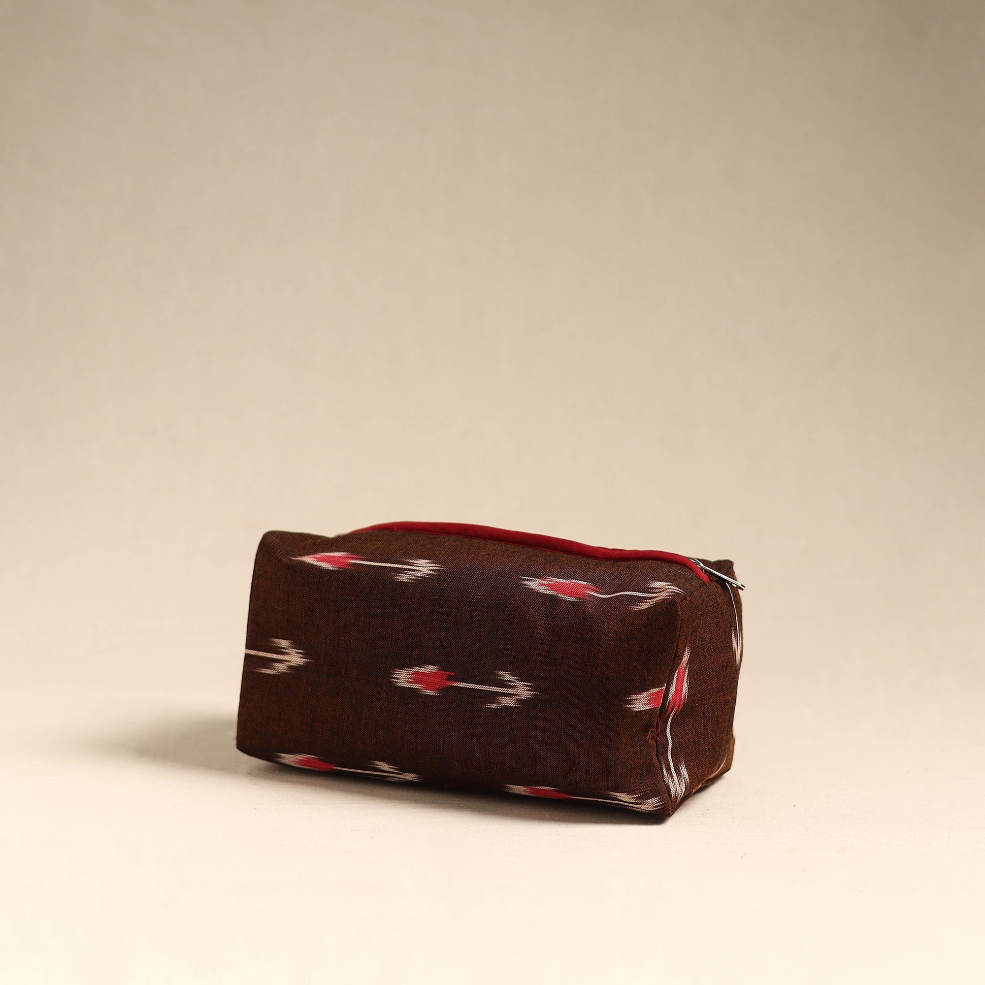 Carry your daily essentials with ease in this maroon handcrafted cotton toiletry pouch. It features a waterproof lining and a secure zip closure for added convenience. Thoughtfully designed by artisans, it’s perfect for travel, the gym, or everyday use.