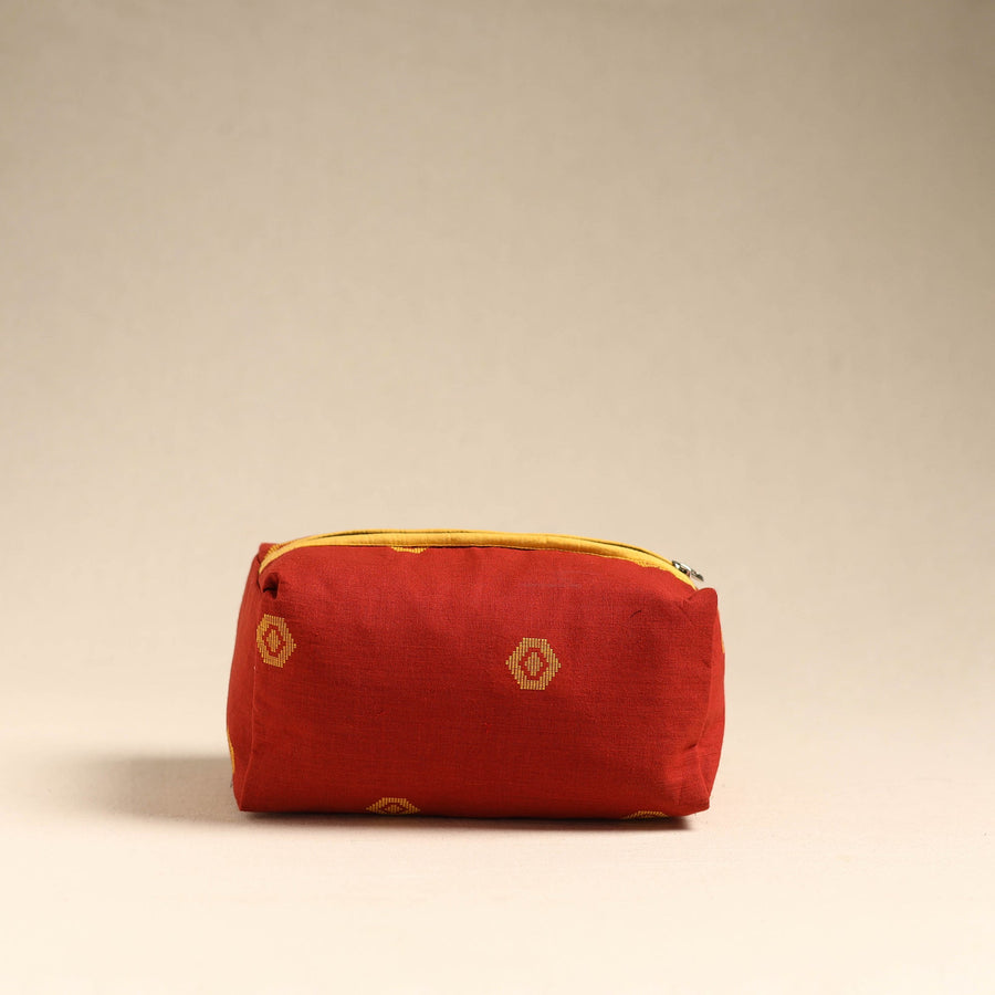 Carry your daily essentials with ease in this red handcrafted cotton toiletry pouch. It features a waterproof lining and a secure zip closure for added convenience. Thoughtfully designed by artisans, it’s perfect for travel, the gym, or everyday use.