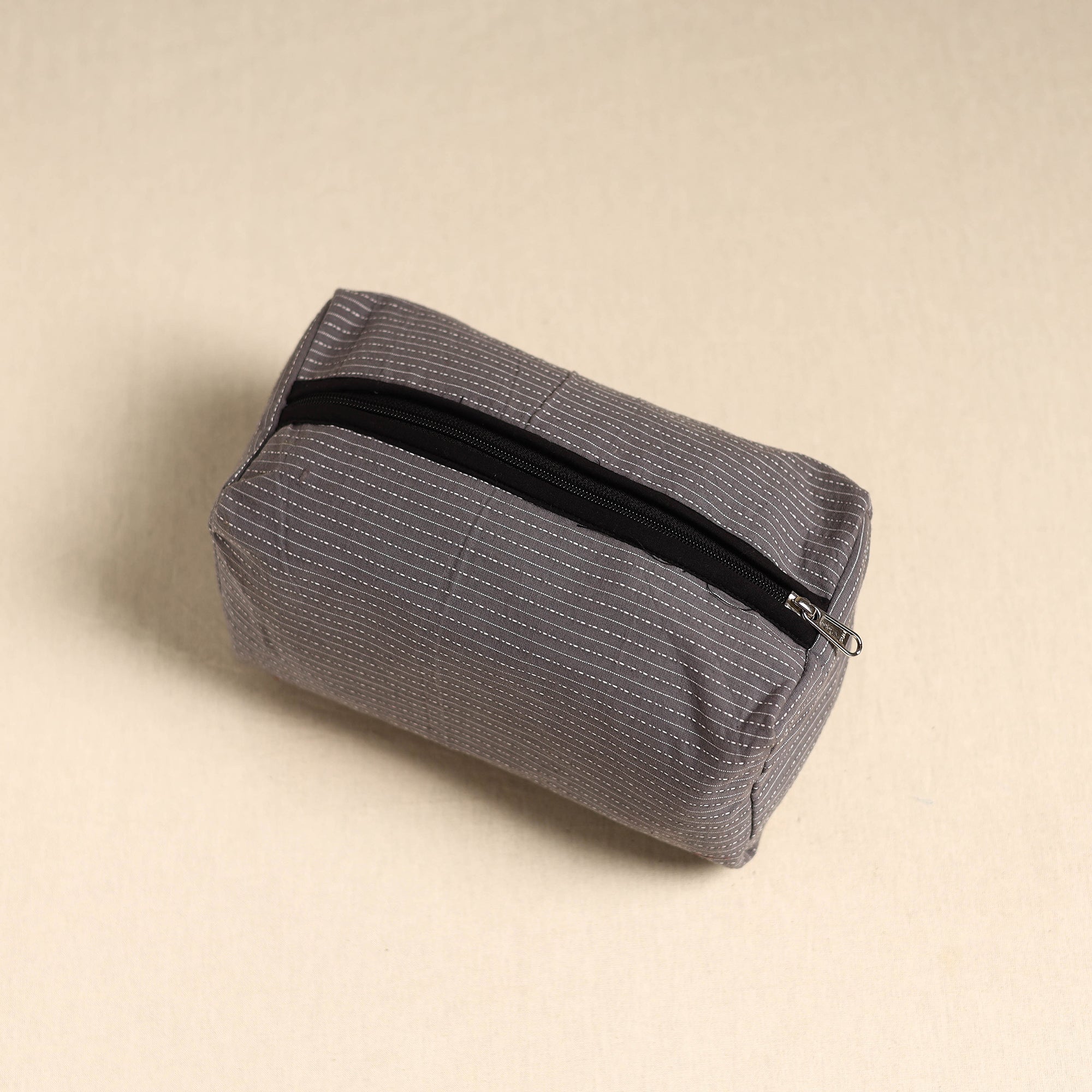 Carry your daily essentials with ease in this grey handcrafted cotton toiletry pouch. It features a waterproof lining and a secure zip closure for added convenience. Thoughtfully designed by artisans, it’s perfect for travel, the gym, or everyday use.