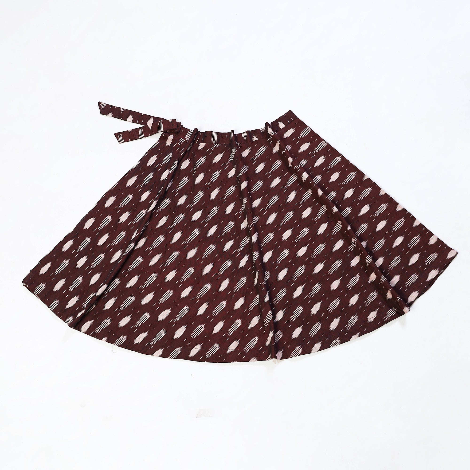Elevate your wardrobe with this exquisite maroon handmade cotton wrap around pochampally ikat skirt a testament to India rich textile heritage. Crafted using the ikat weaving technique this skirt boasts intricate patterns and vibrant colors that reflect centuries of artistry. The lightweight breathable cotton fabric ensures comfort and style for all day wear while the adjustable waist tie closure offers a perfect fit.