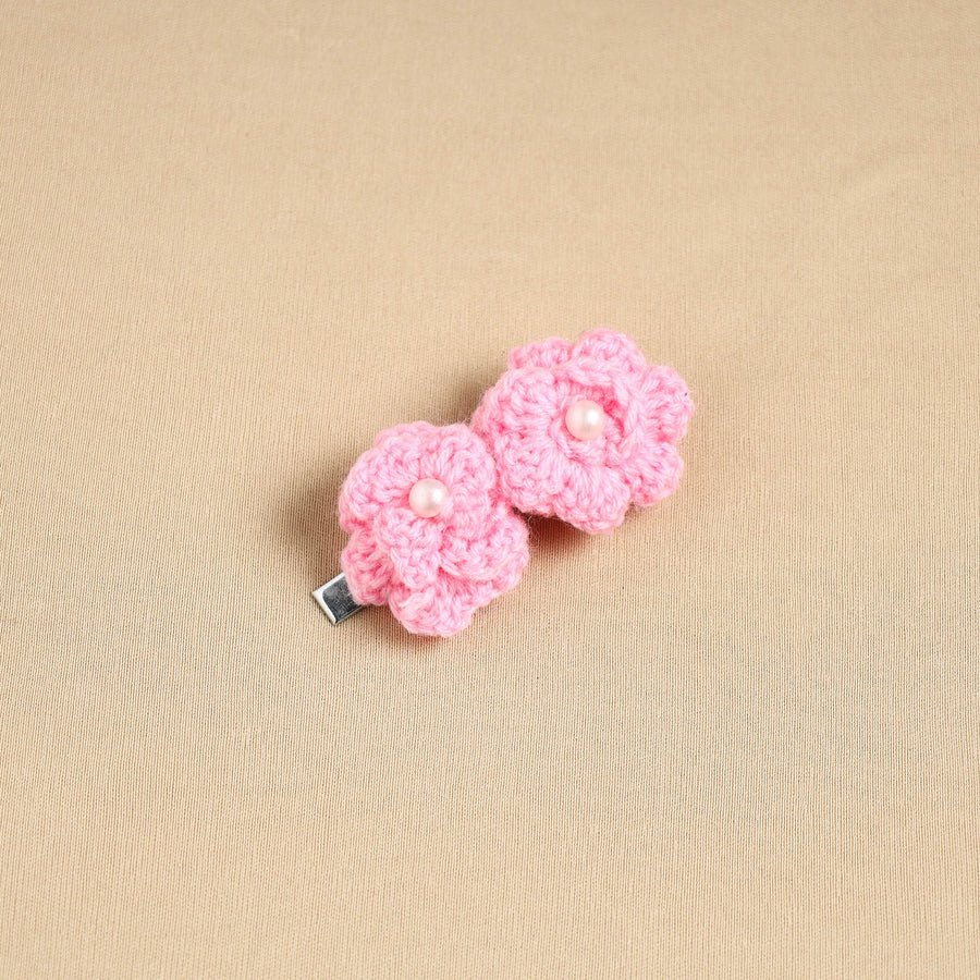 Add charm to your hairdo with our handmade pink crochet hair clip, adorned with delicate pearls, crafted with love and precision. These unique clips are perfect for securing loose locks or embellishing your ponytail.