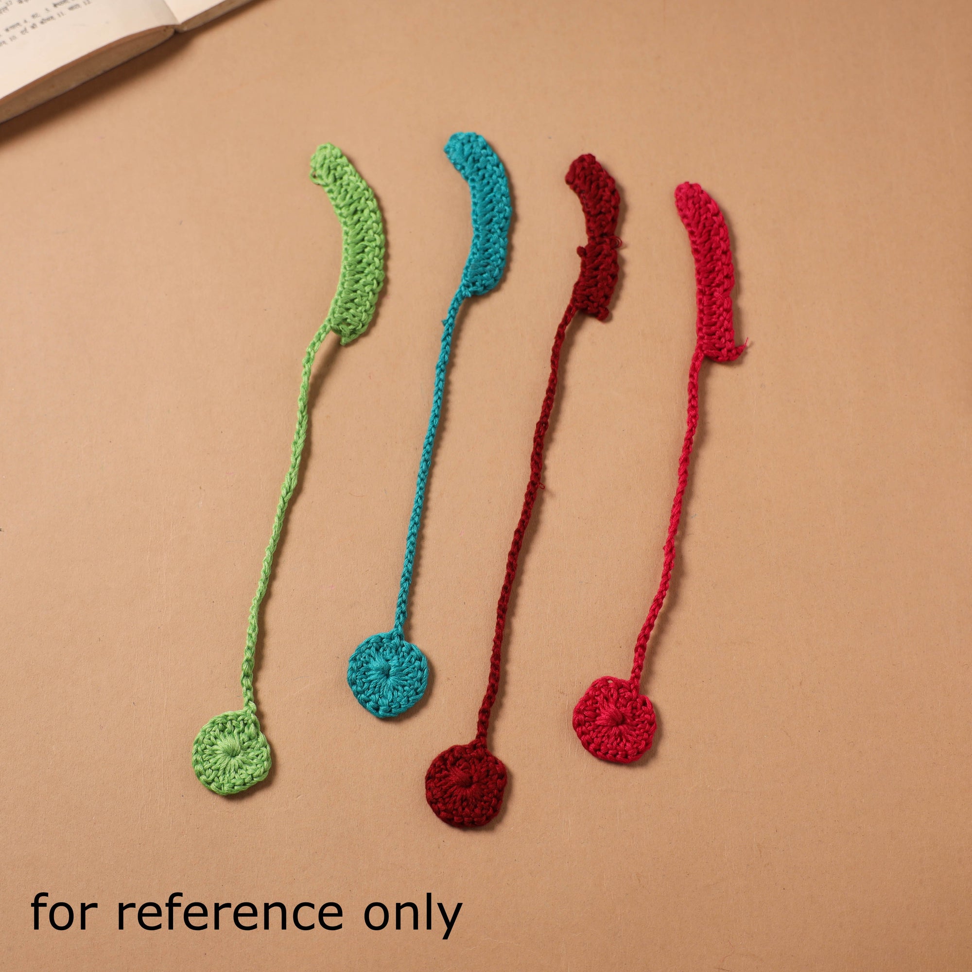 Handmade crochet work bookmark, a technique where yarn is looped by hand to create textured patterns. Simple and lightweight, it is suitable for everyday reading use. The Crochet bookmark adds handmade character to your reading journey, cheerful and vibrant enough for any book lover to fall in love with. Crafted from delicate wool.