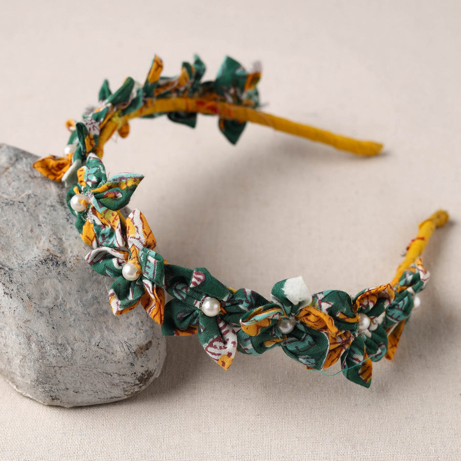 This handmade hair band is crafted from soft cotton fabric with intricate beadwork. Comfortable for all-day wear its perfect for casual outings or special events. Made by skilled artisans its a sustainable and stylish choice for any occasion.