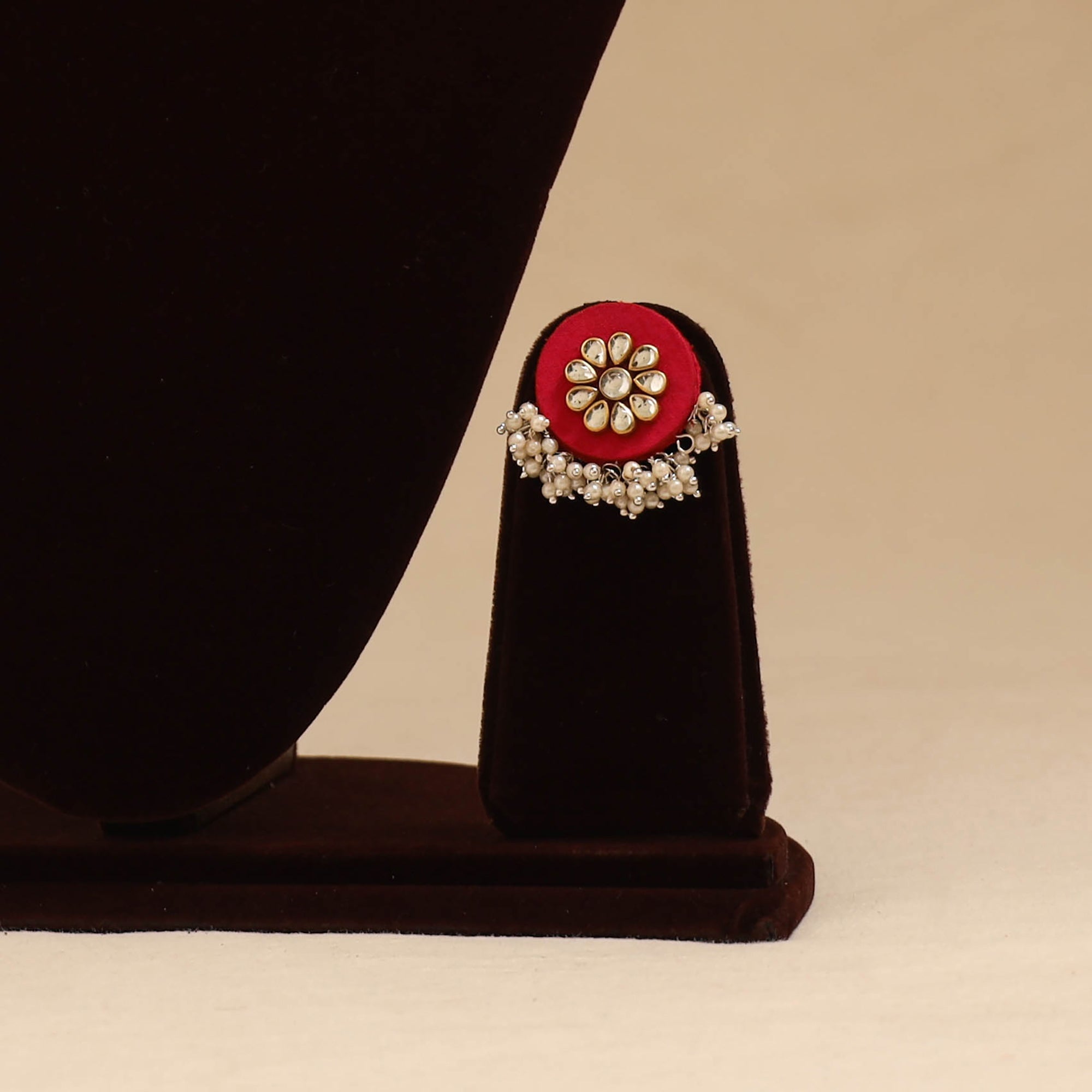 This handmade red fabart choker necklace set features intricate kundan work and delicate beads that add a graceful touch to your look. Designed by skilled artisans, the set includes matching earrings. Lightweight and easy to wear, it brings a unique charm to both festive occasions and everyday style.