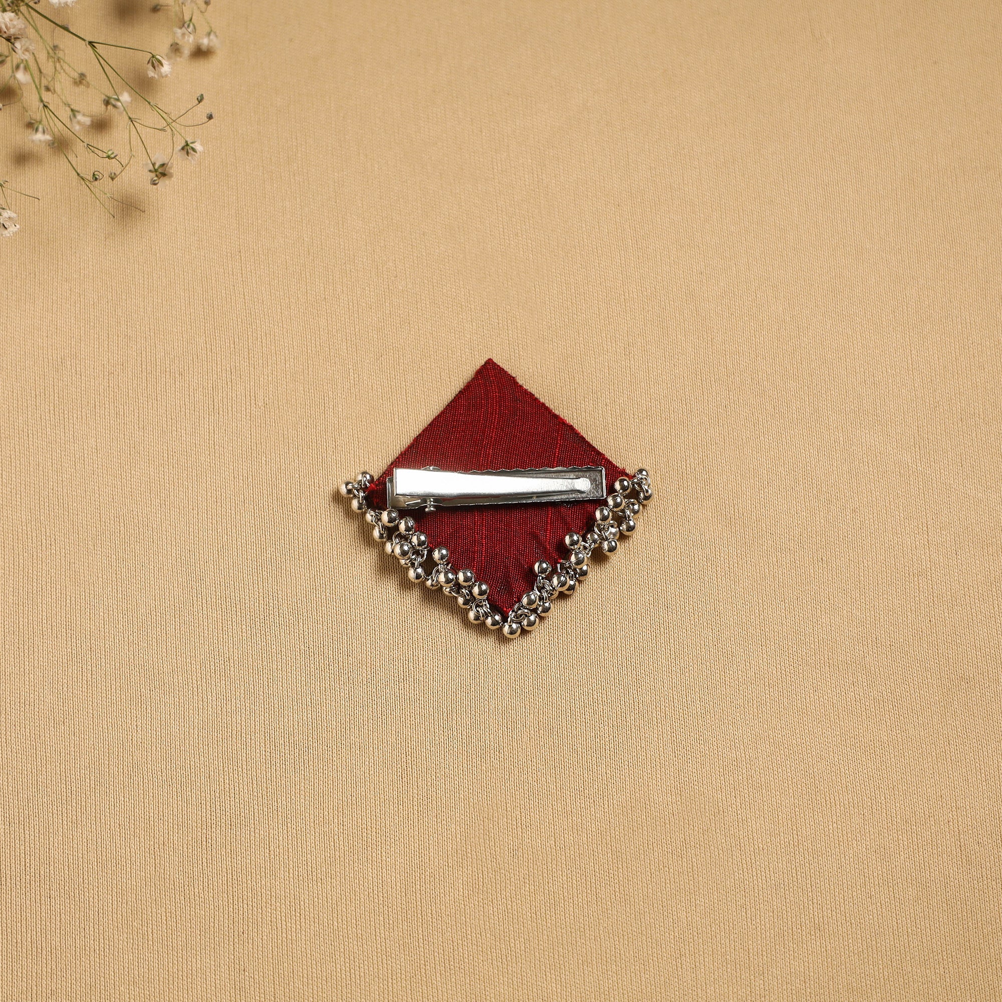 Handmade hair clip adds a graceful touch to your hairstyle. Features intricate artistic details that may include fabric, ghungroo work or other decorative elements, reflecting the unique creativity of the maker.