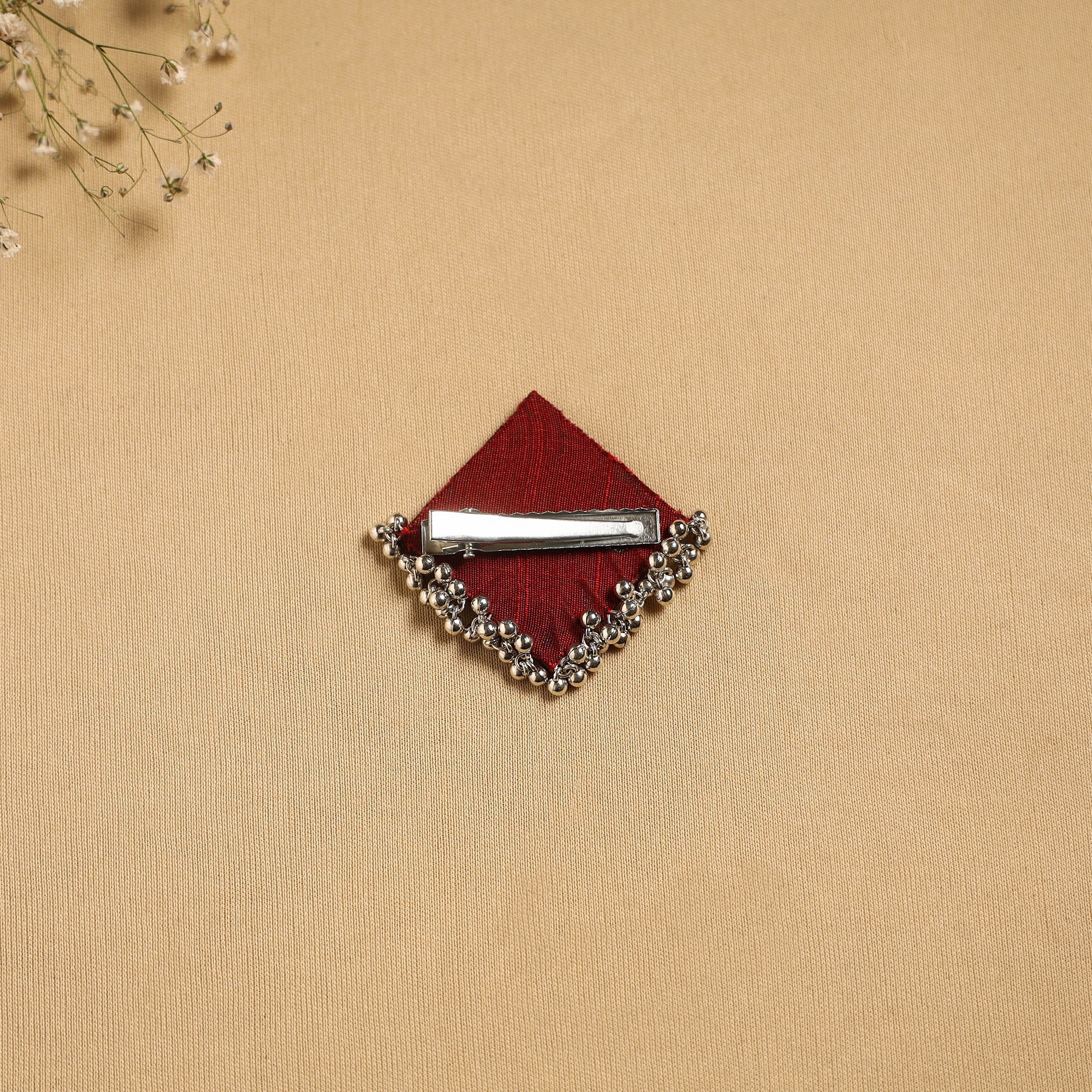 Maroon handmade hair clip adds a graceful touch to your hairstyle. Features intricate artistic details that may include fabric, ghungroo work or other decorative elements, reflecting the unique creativity of the maker.