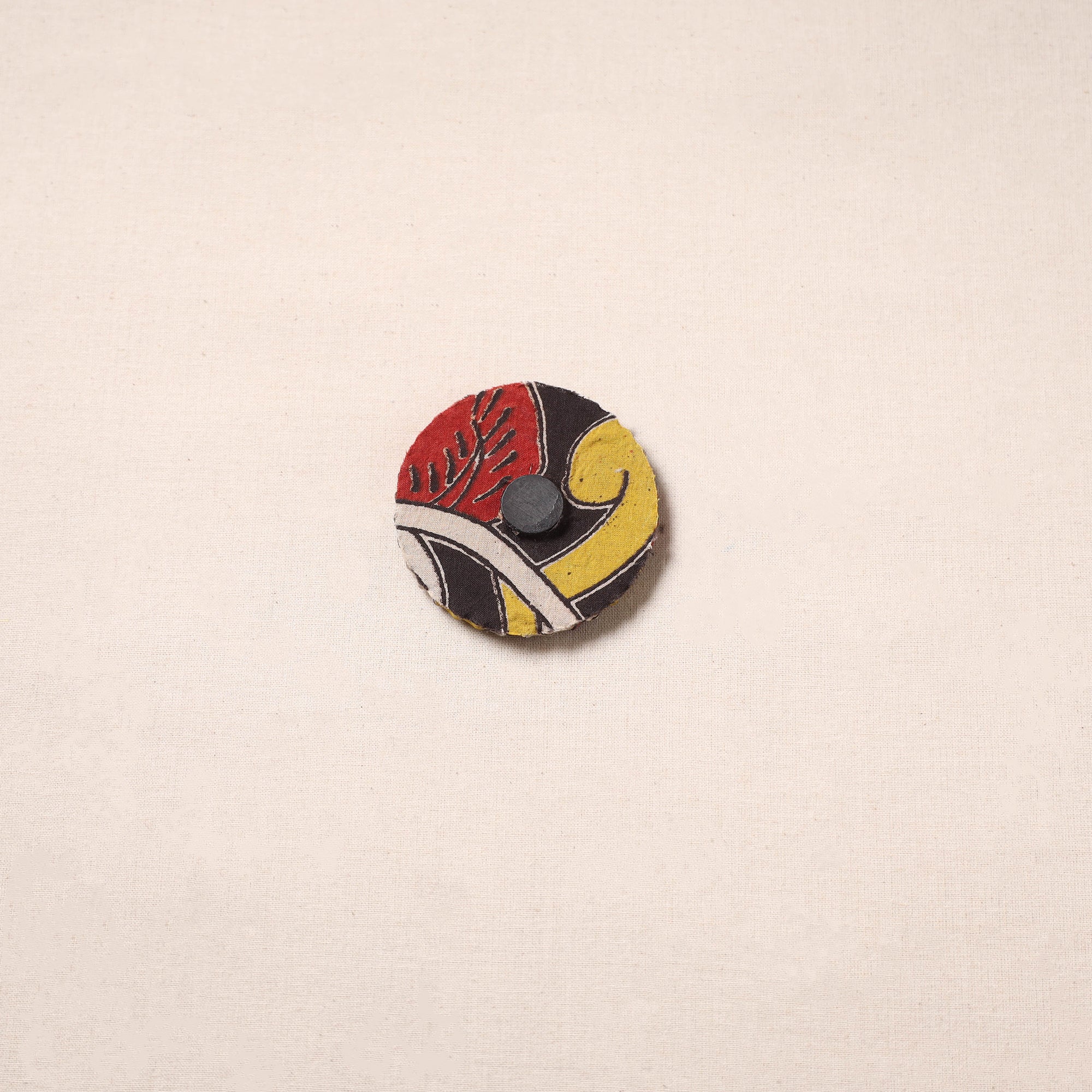 This decorative magnet is made with a strong wooden base and covered with fabric on top. Jute work and small decorative details add a beautiful touch. It can be used on fridge doors, office boards, workstations or magnetic boards to hold notes, photos or reminders while adding a decorative look to your space.