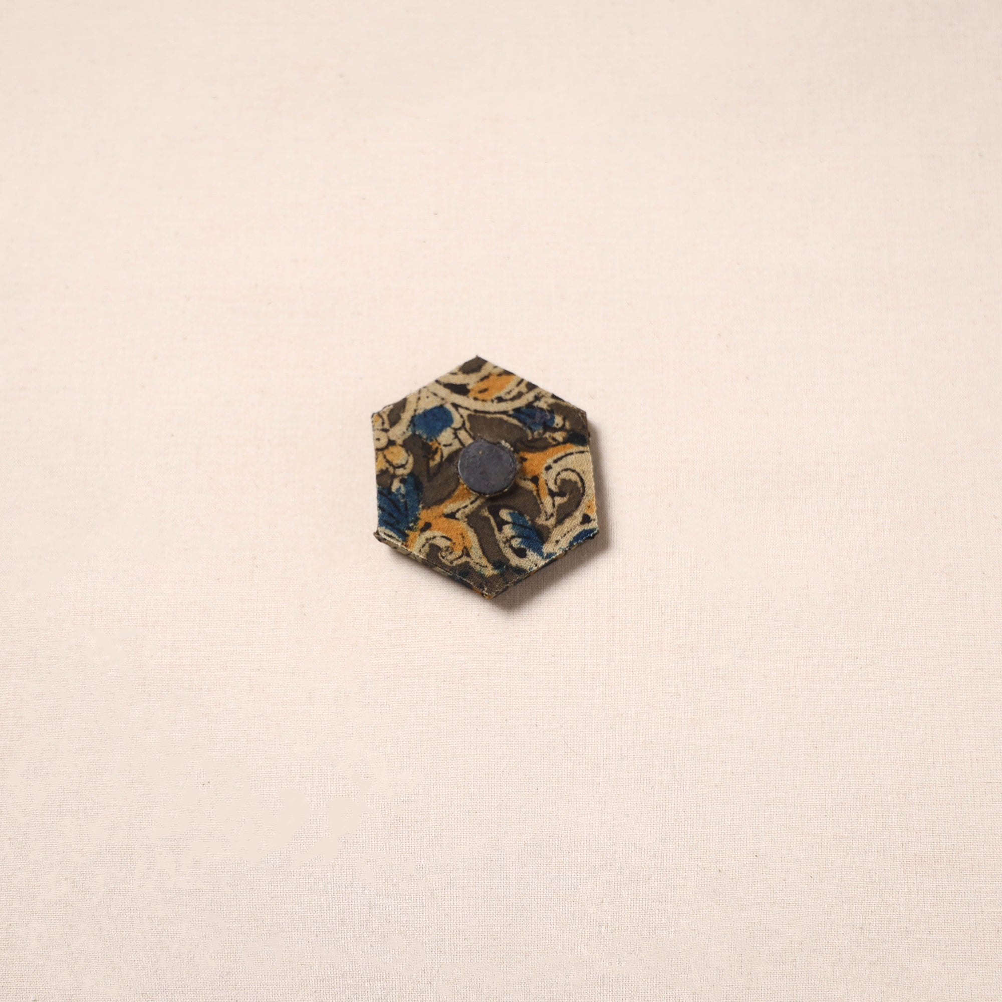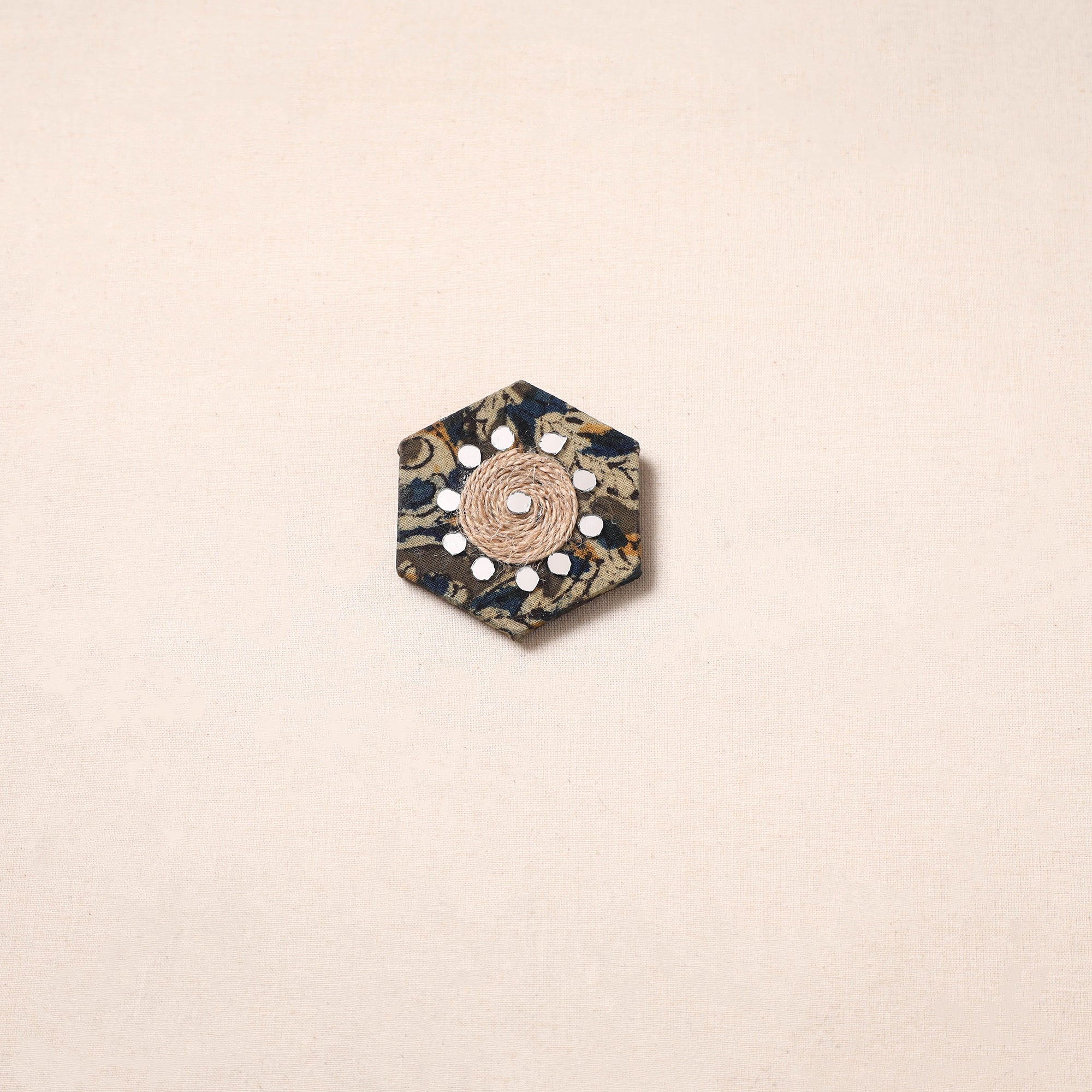 This decorative magnet is made with a strong wooden base and covered with fabric on top. Jute work and small decorative details add a beautiful touch. It can be used on fridge doors, office boards, workstations or magnetic boards to hold notes, photos or reminders while adding a decorative look to your space.