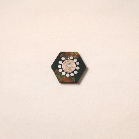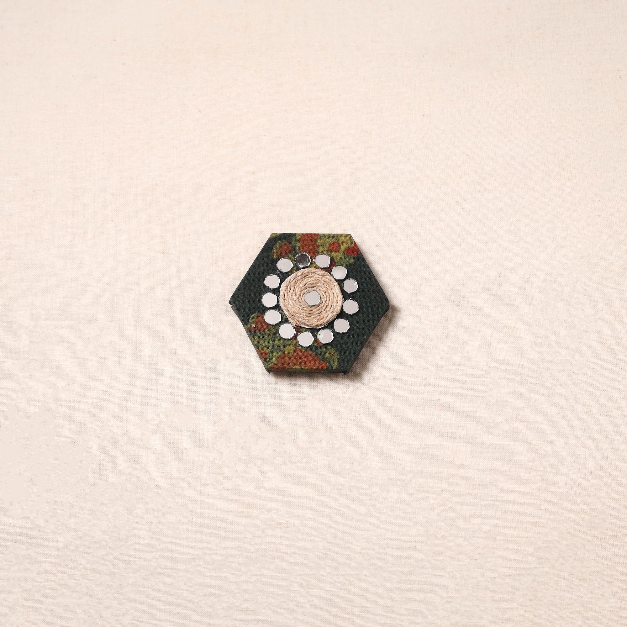This decorative magnet is made with a strong wooden base and covered with fabric on top. Jute work and small decorative details add a beautiful touch. It can be used on fridge doors, office boards, workstations or magnetic boards to hold notes, photos or reminders while adding a decorative look to your space.
