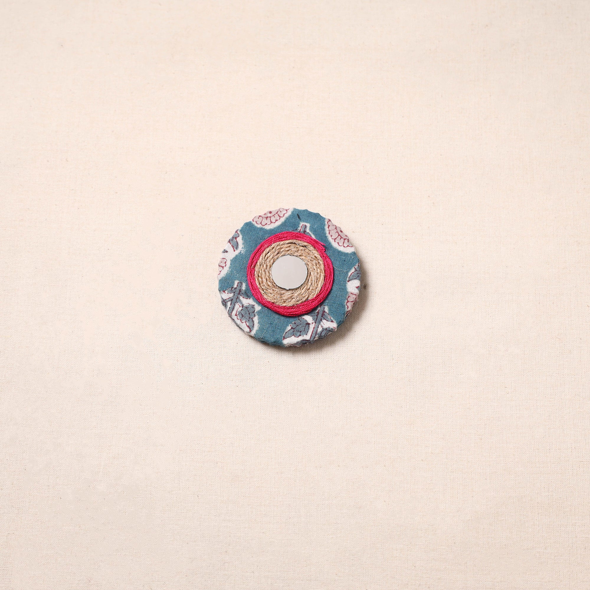 This decorative magnet is made with a strong wooden base and covered with fabric on top. Jute work and small decorative details add a beautiful touch. It can be used on fridge doors, office boards, workstations or magnetic boards to hold notes, photos or reminders while adding a decorative look to your space.