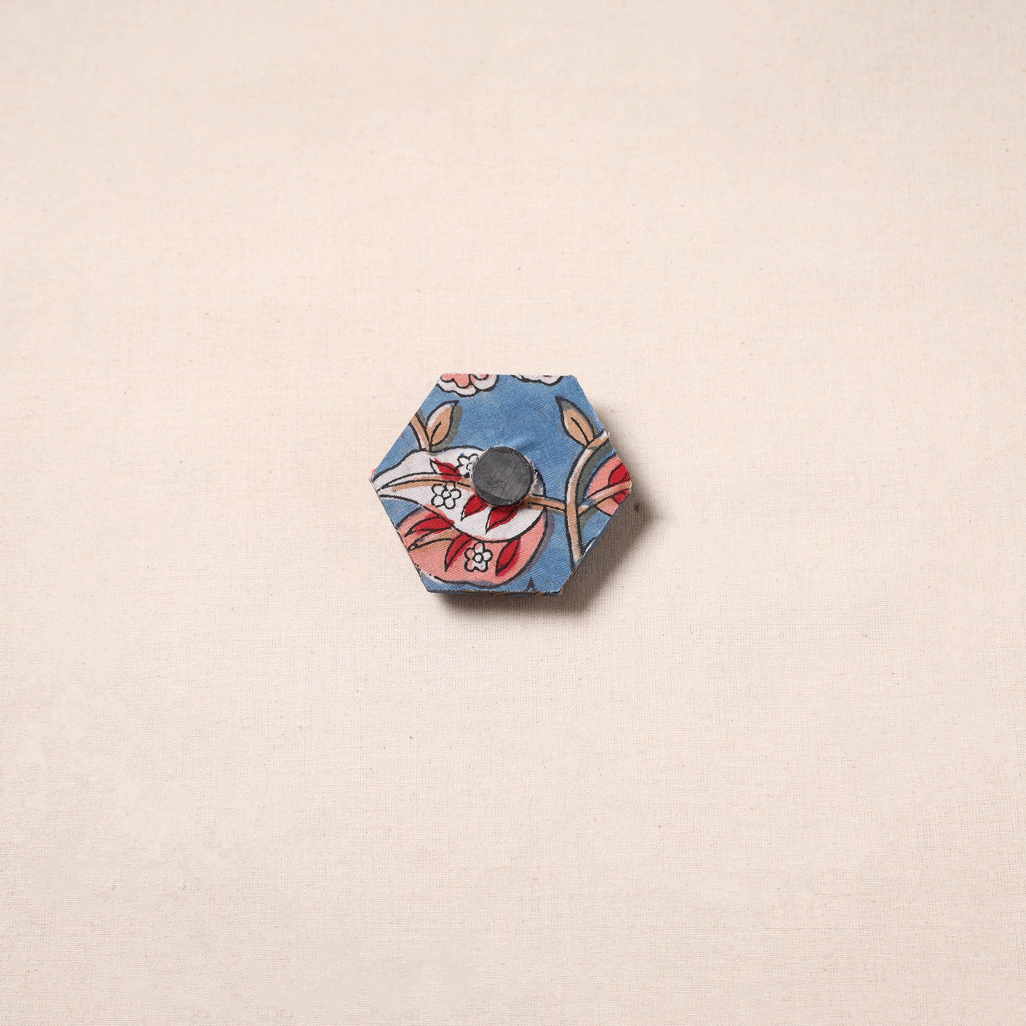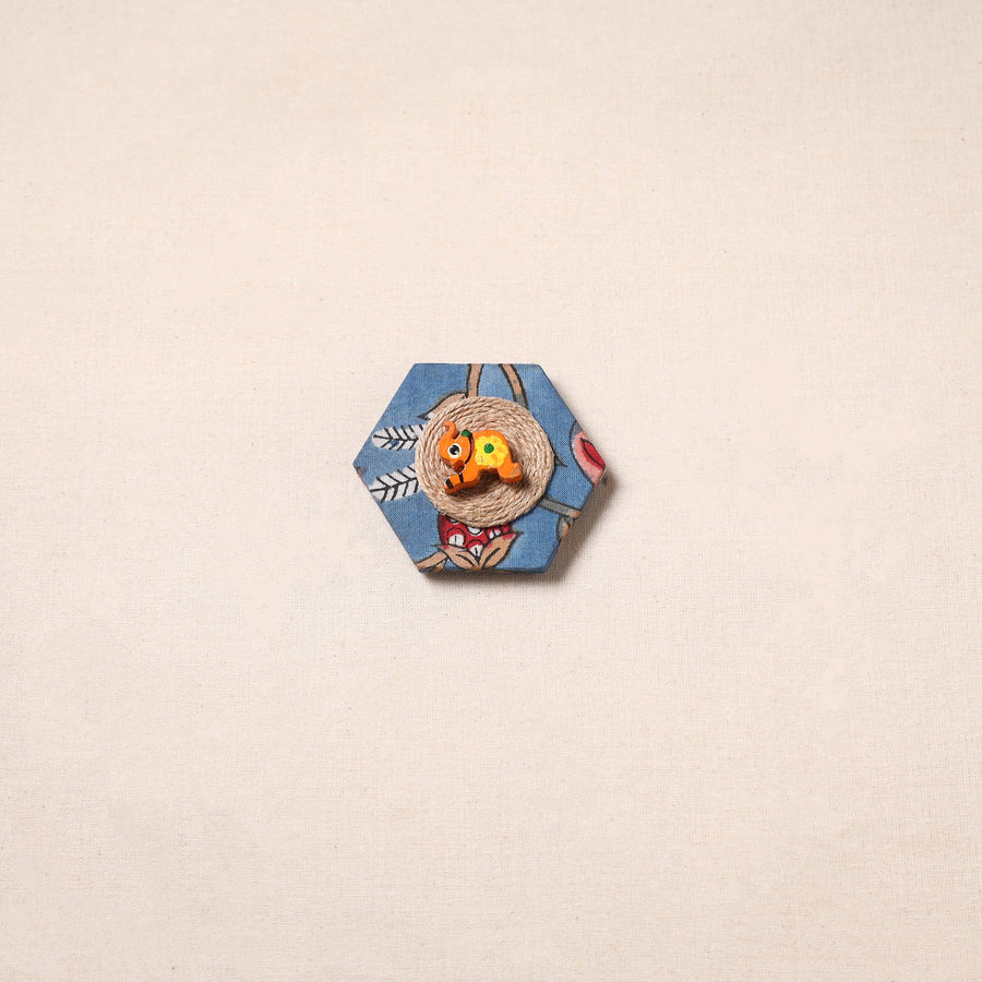 This decorative magnet is made with a strong wooden base and covered with fabric on top. Jute work and small decorative details add a beautiful touch. It can be used on fridge doors, office boards, workstations or magnetic boards to hold notes, photos or reminders while adding a decorative look to your space.