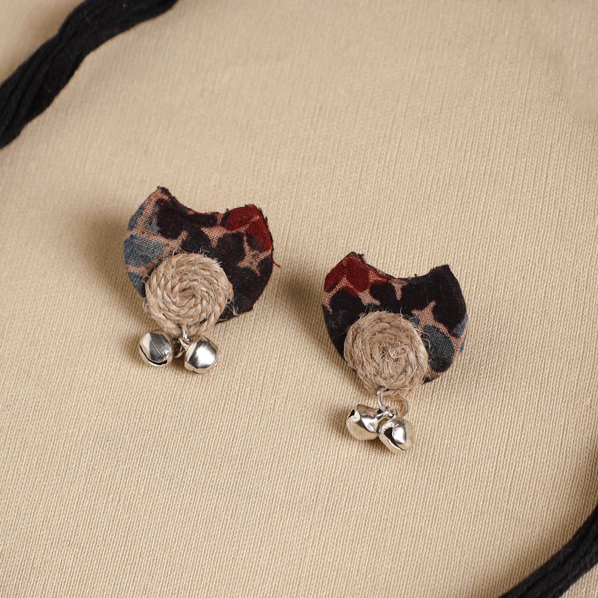 Complete your look with this black handcrafted fabart necklace set. It features a thread necklace paired with a vibrant fabric pendant and matching earrings. Jute & ghungroo accents add charm, making it perfect for festive occasions or everyday elegance with a touch of handmade flair.