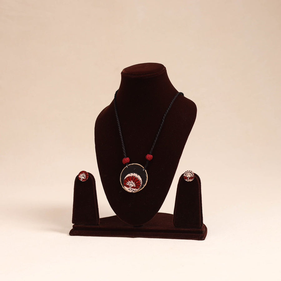 Elevate your ethnic look with this handcrafted black necklace set featuring a fabric pendant known for its vibrant textures and artisanal touch. Paired with matching earrings, it’s perfect for festive occasions, cultural events, or adding a distinctive charm to everyday outfits.