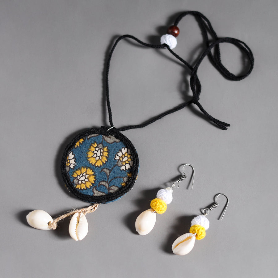 Enhance your style with our multicolor handmade fabart shell work necklace set for women. This set is made from fabric and threads, beautifully adorned with delicate shells. Ideal for any occasion, this necklace set adds sophistication to your outfits.