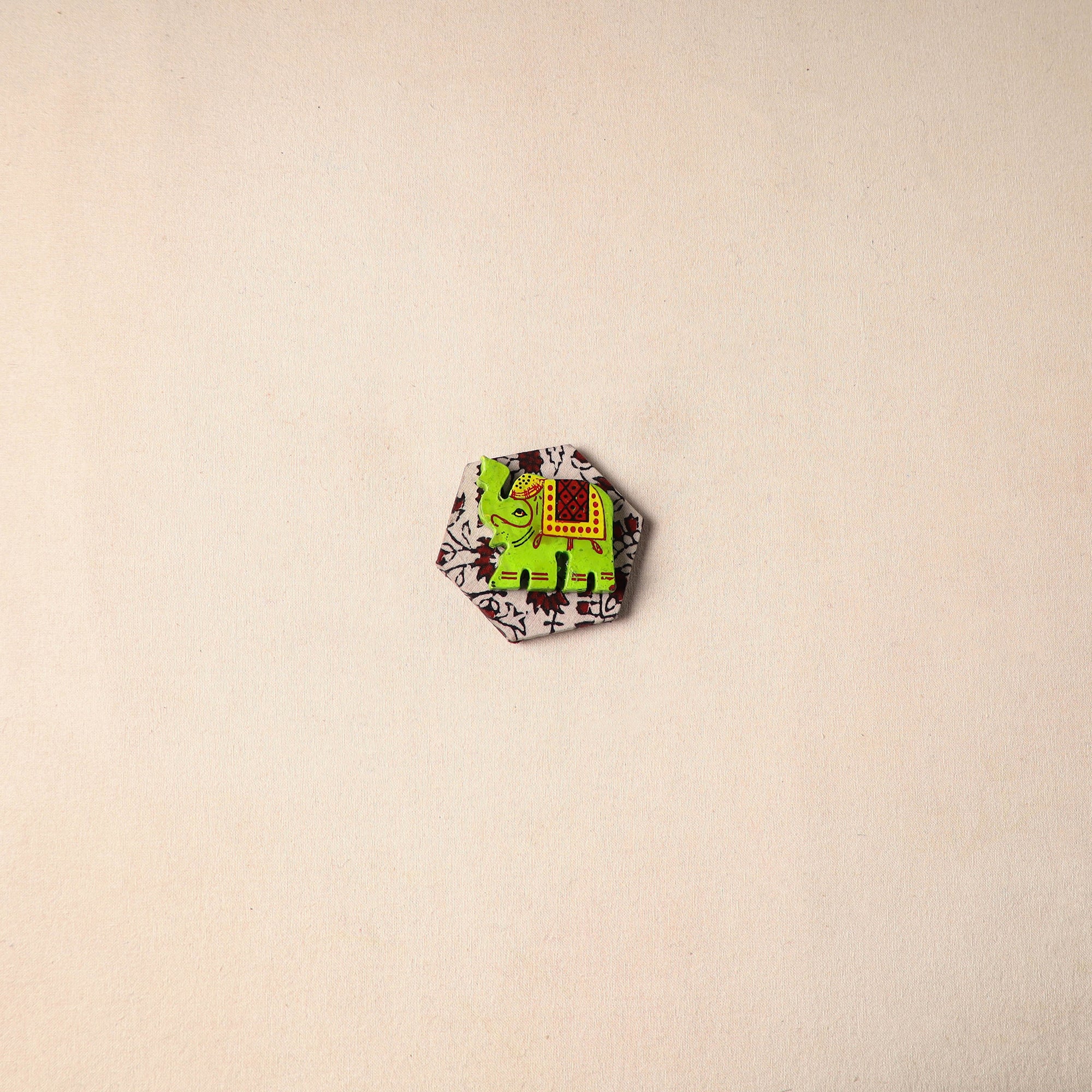 Multicolor handcrafted magnet made by skilled artisans. Made from durable wood and cotton fabric, this magnet can be placed on your fridge, workstation or magnetic board to add a unique touch to your space.