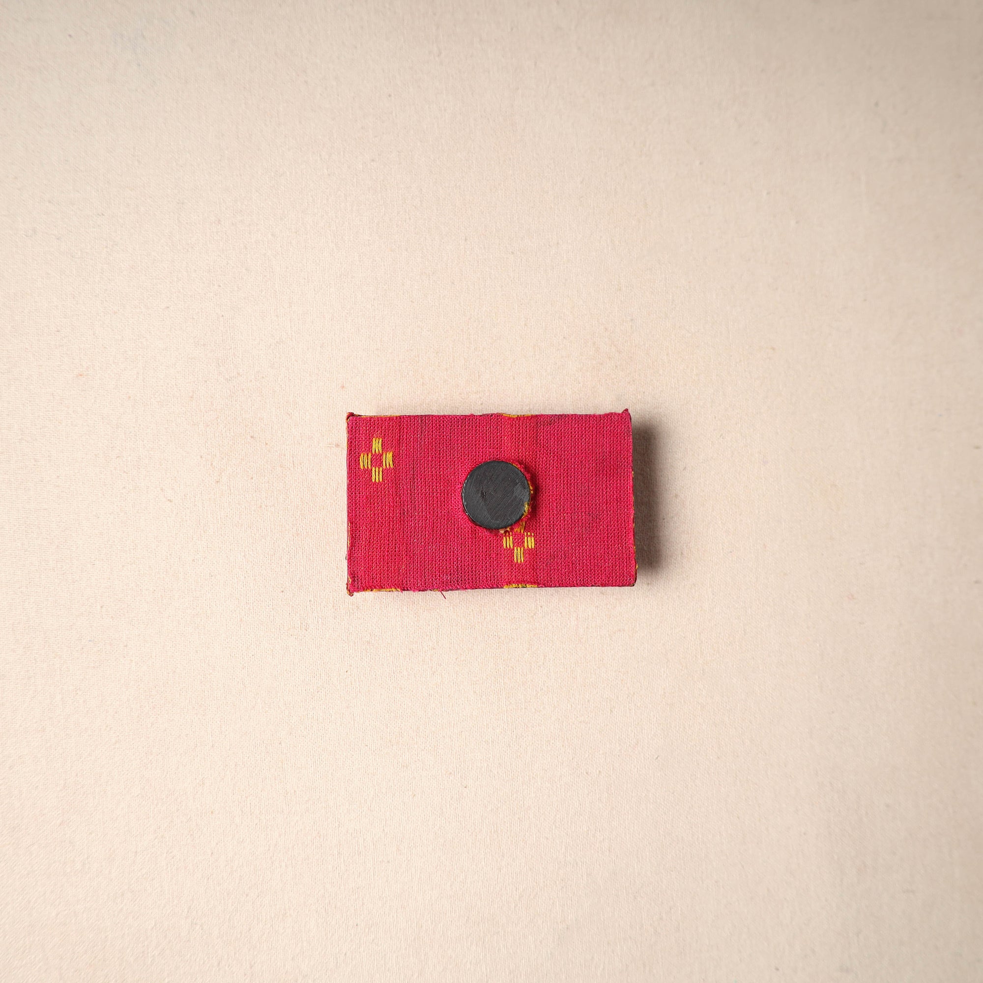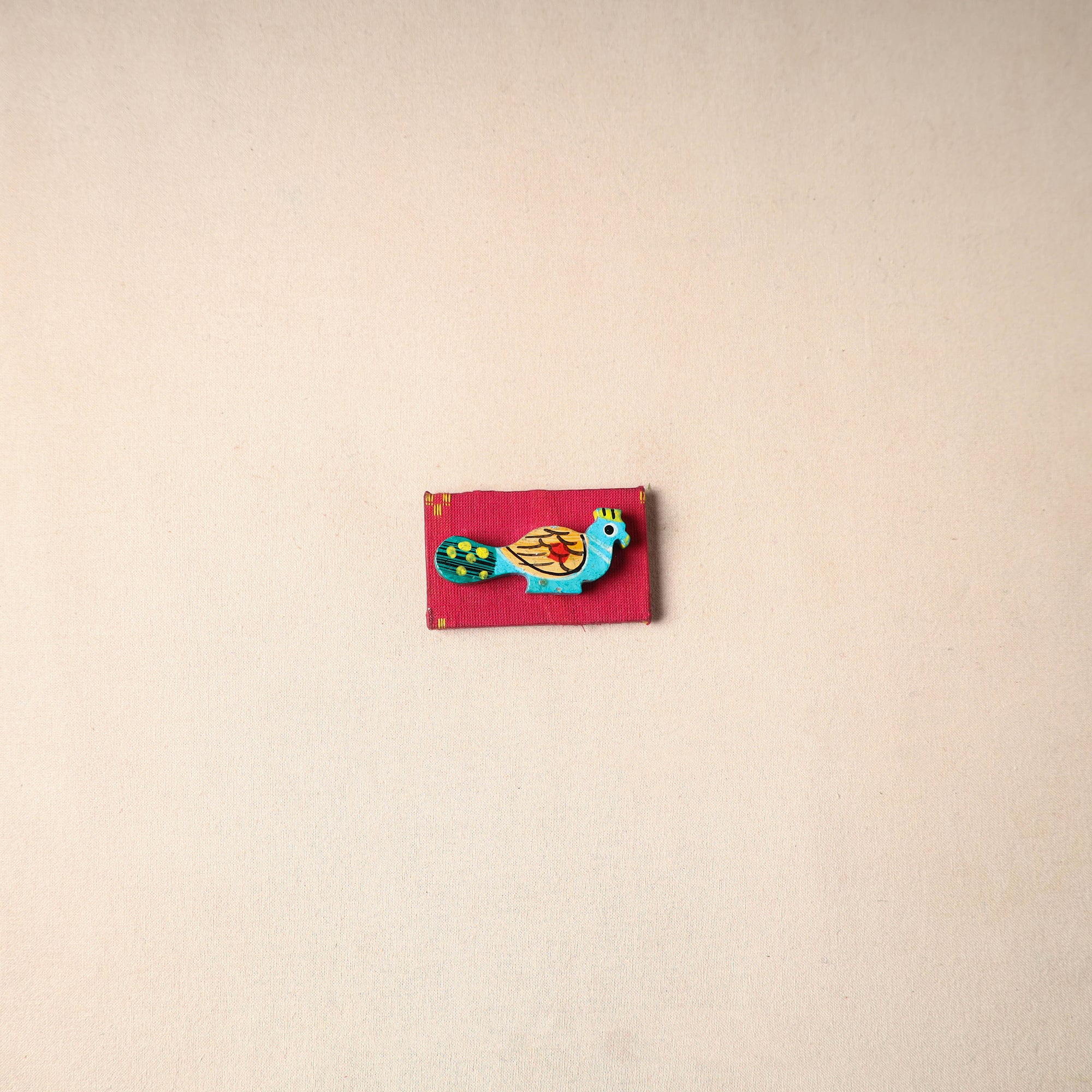 Multicolor handcrafted magnet made by skilled artisans. Made from durable wood and cotton fabric, this magnet can be placed on your fridge, workstation or magnetic board to add a unique touch to your space.