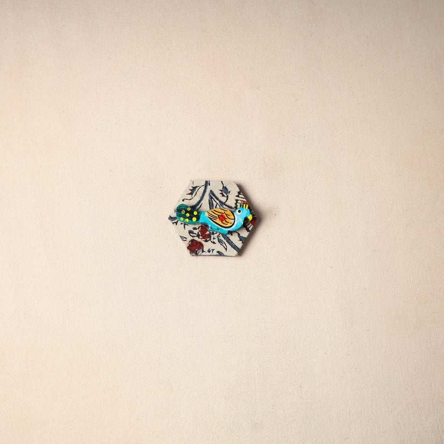 Multicolor handcrafted magnet made by skilled artisans. Made from durable wood and cotton fabric, this magnet can be placed on your fridge, workstation or magnetic board to add a unique touch to your space.