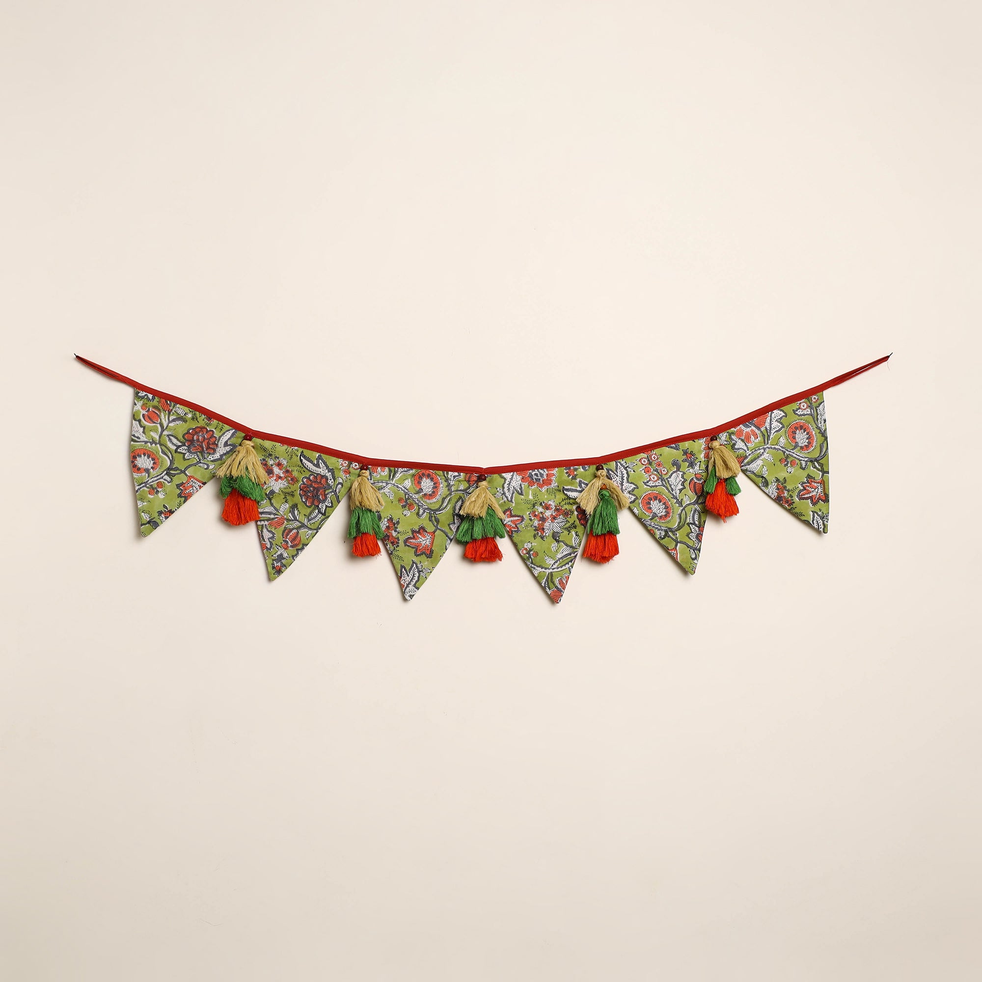 Handmade fabric beads and tassels toran have adorned entrances for centuries, symbolizing auspiciousness. This handmade toran for door decoration features intricate fabric work, colorful beads, and delicate tassels, crafted by skilled artisans. Perfect for festivals, poojas, or everyday home decor.