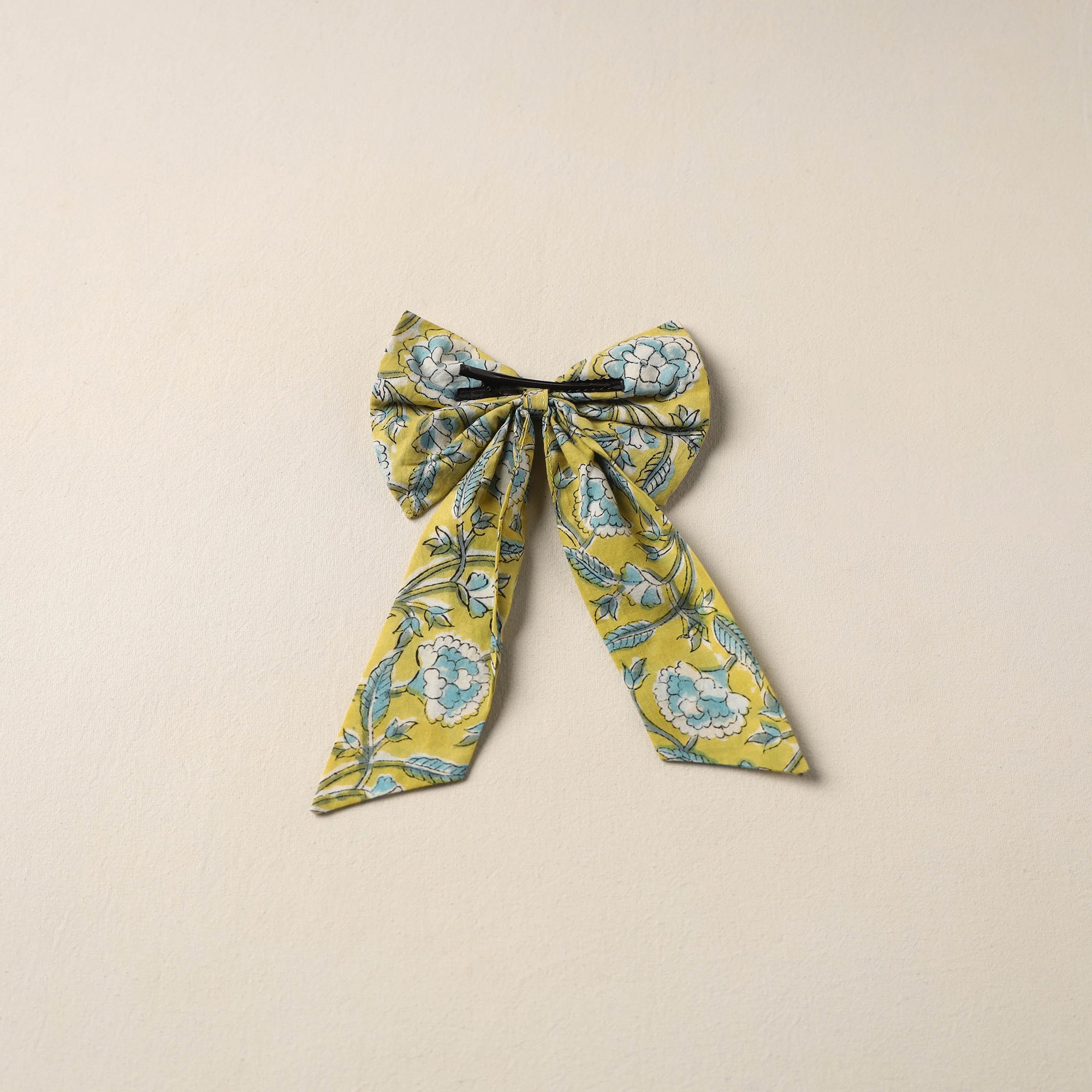 This yellow fabric bow hair clip adds a cute, artisanal flair to your hairdos. Hand-stitched by skilled artisans with traditional fabric work, it's comfy to wear and pairs well with casual outfits, be it for everyday looks, weekend plans, or laid-back college days.
