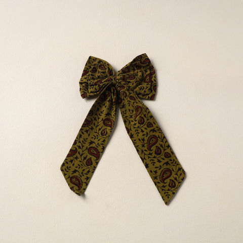 This green fabric bow hair clip adds a cute, artisanal flair to your hairdos. Hand-stitched by skilled artisans with traditional fabric work, it's comfy to wear and pairs well with casual outfits, be it for everyday looks, weekend plans, or laid-back college days.