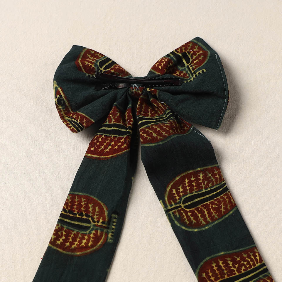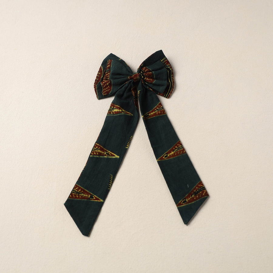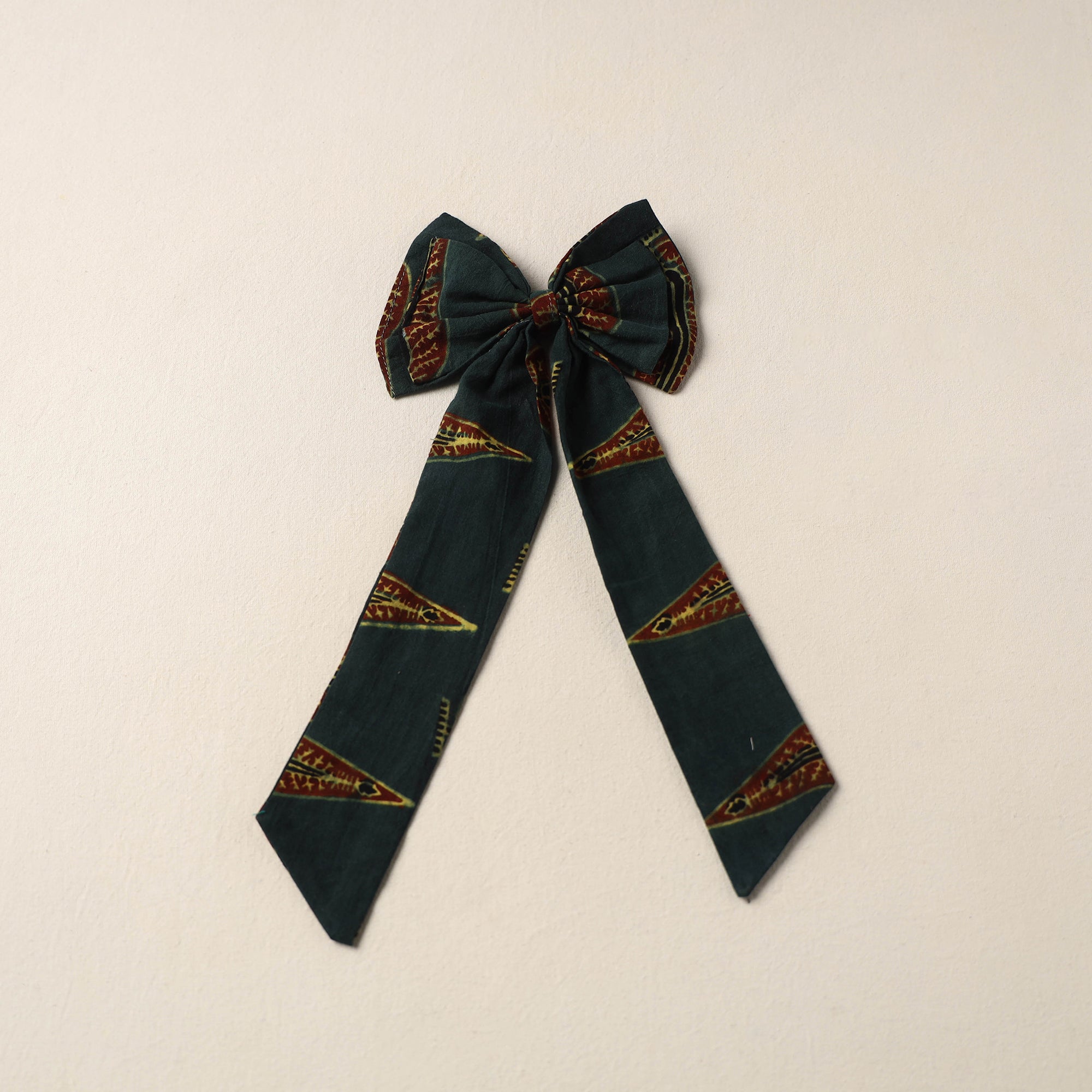 This green fabric bow hair clip adds a cute, artisanal flair to your hairdos. Hand-stitched by skilled artisans with traditional fabric work, it's comfy to wear and pairs well with casual outfits, be it for everyday looks, weekend plans, or laid-back college days.
