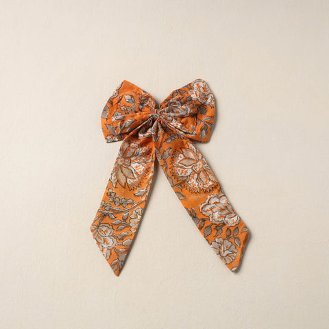 This orange fabric bow hair clip adds a cute, artisanal flair to your hairdos. Hand-stitched by skilled artisans with traditional fabric work, it's comfy to wear and pairs well with casual outfits, be it for everyday looks, weekend plans, or laid-back college days.