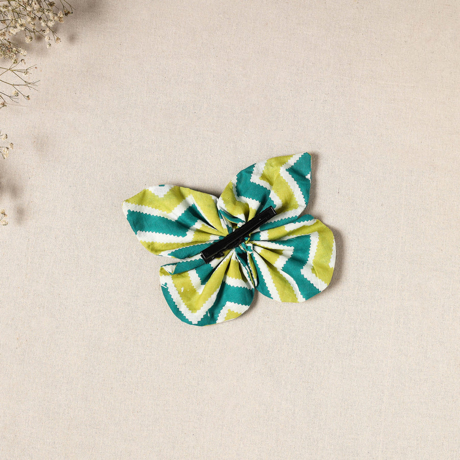 Enhance your style with this handmade fabric butterfly hair clip crafted using traditional fabart techniques. These artisanal clips feature fabric flowers made by skilled artisans. Perfect for adding a unique and eco-friendly touch to any look.